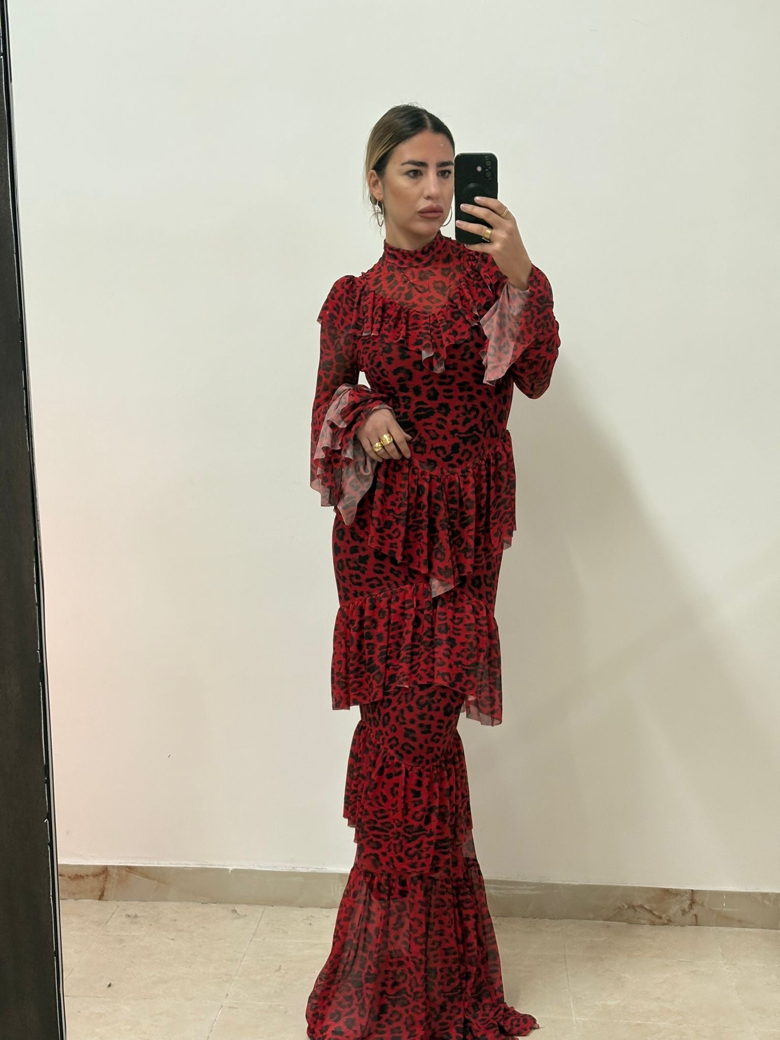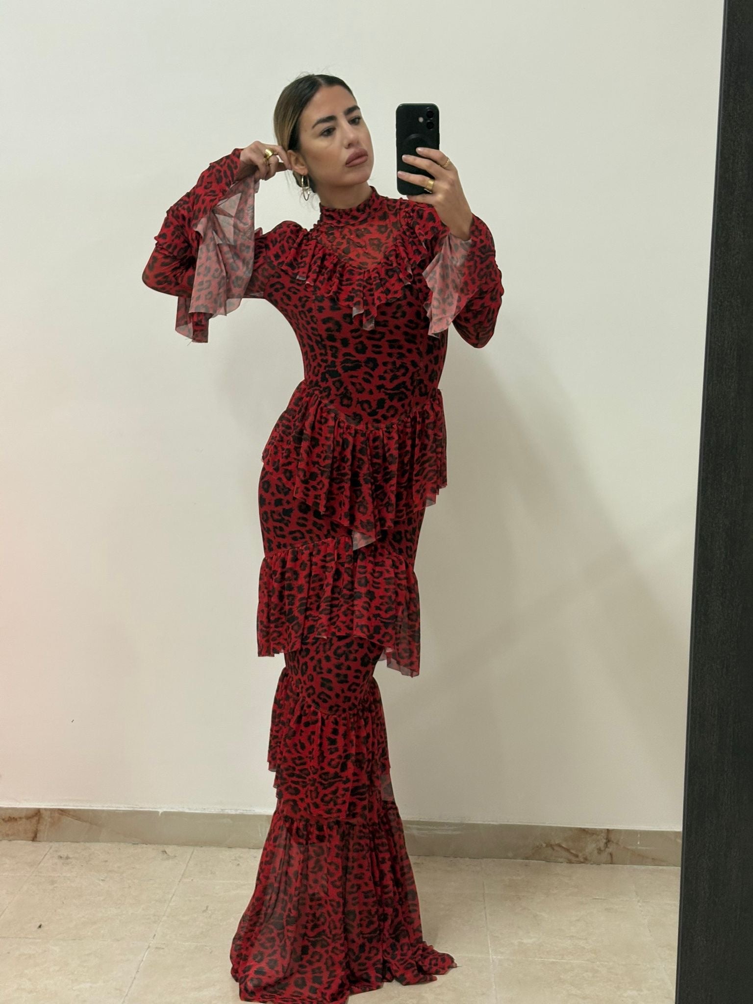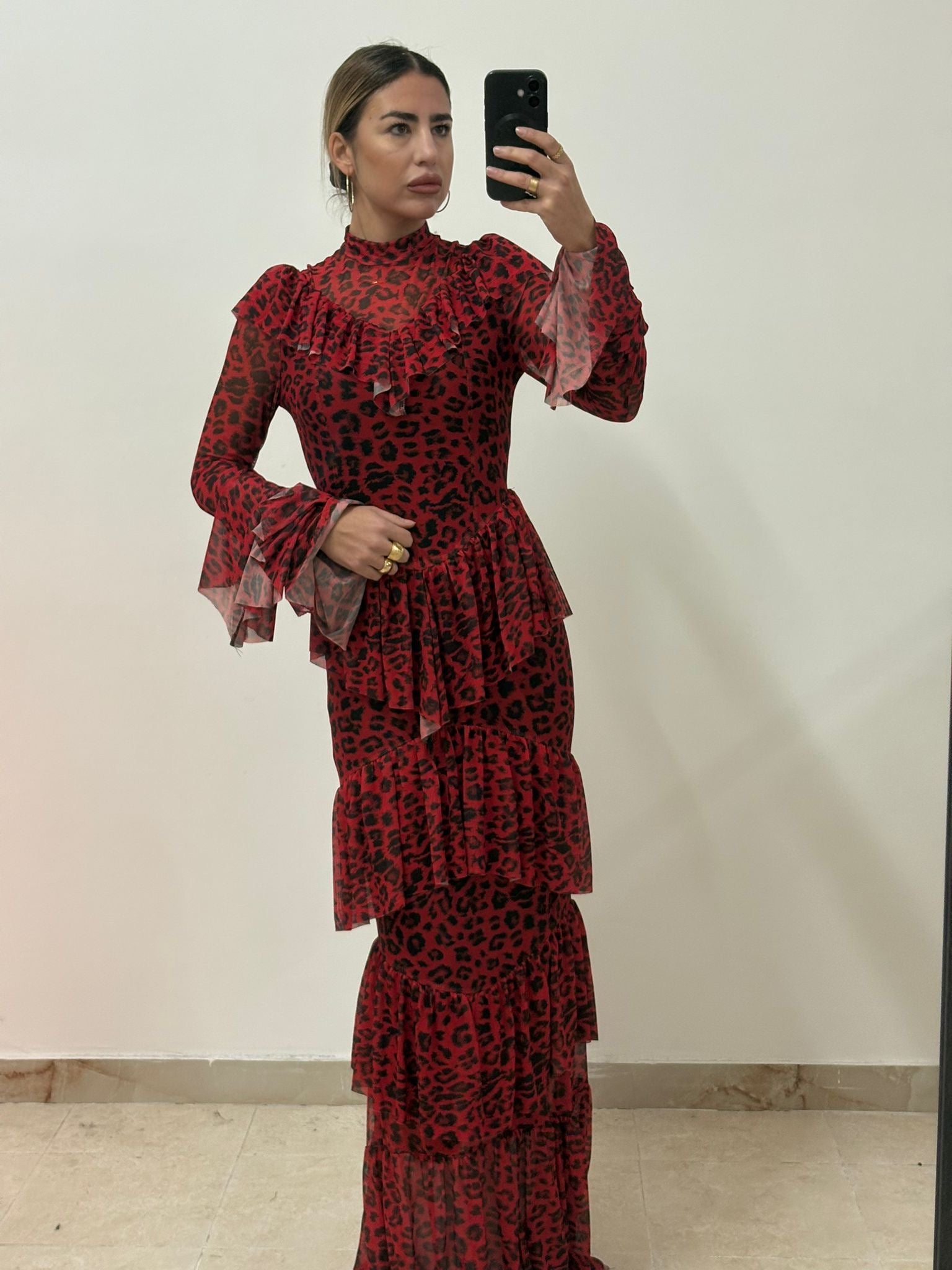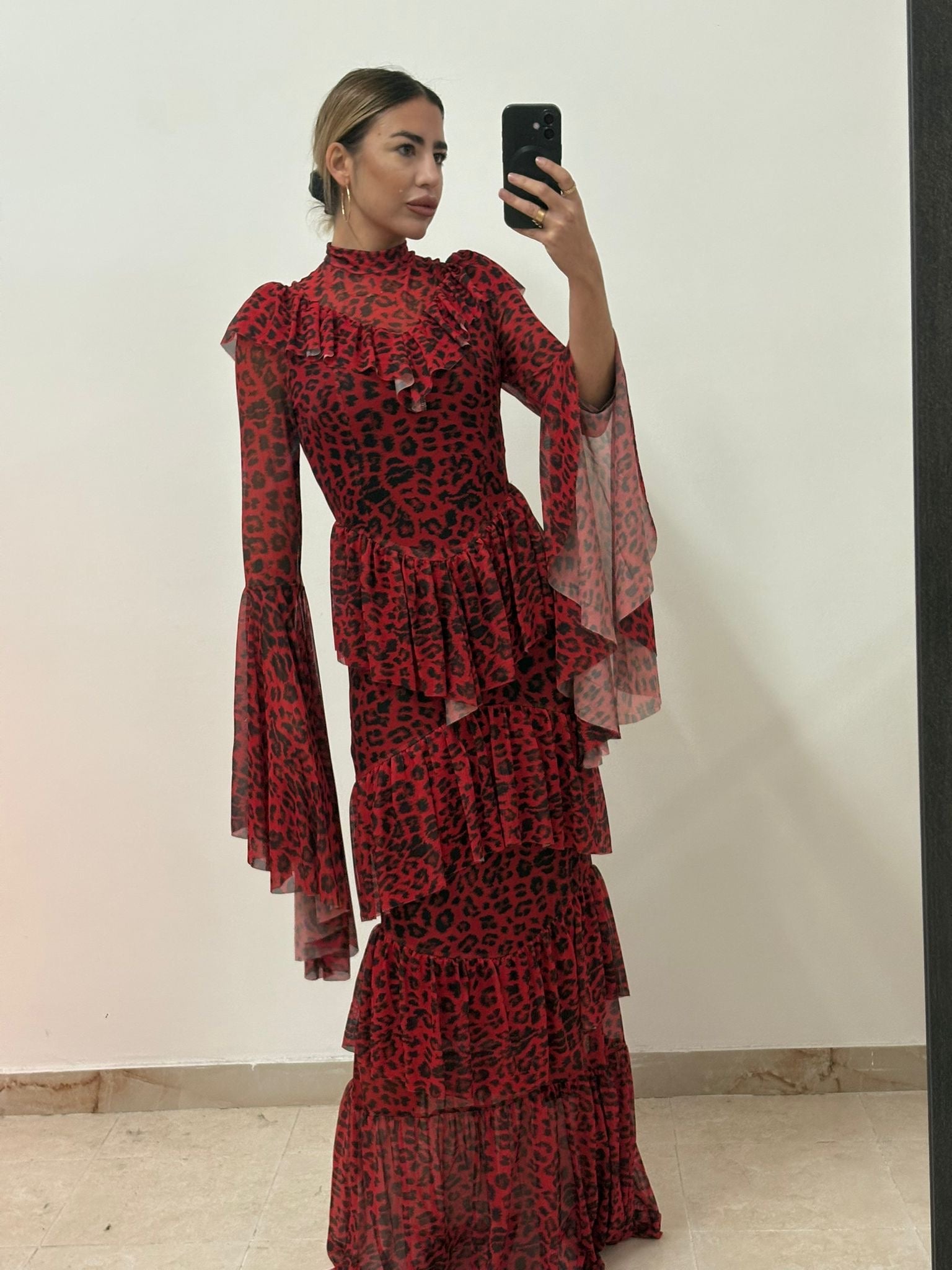 L'abito Venere è un capo romantico con balze maculato rosso, perfetto per un'occasione speciale. Il suo design elegante e femminile è ideale per creare un look raffinato e alla moda. Rendi ogni momento speciale con l'Abito Venere.