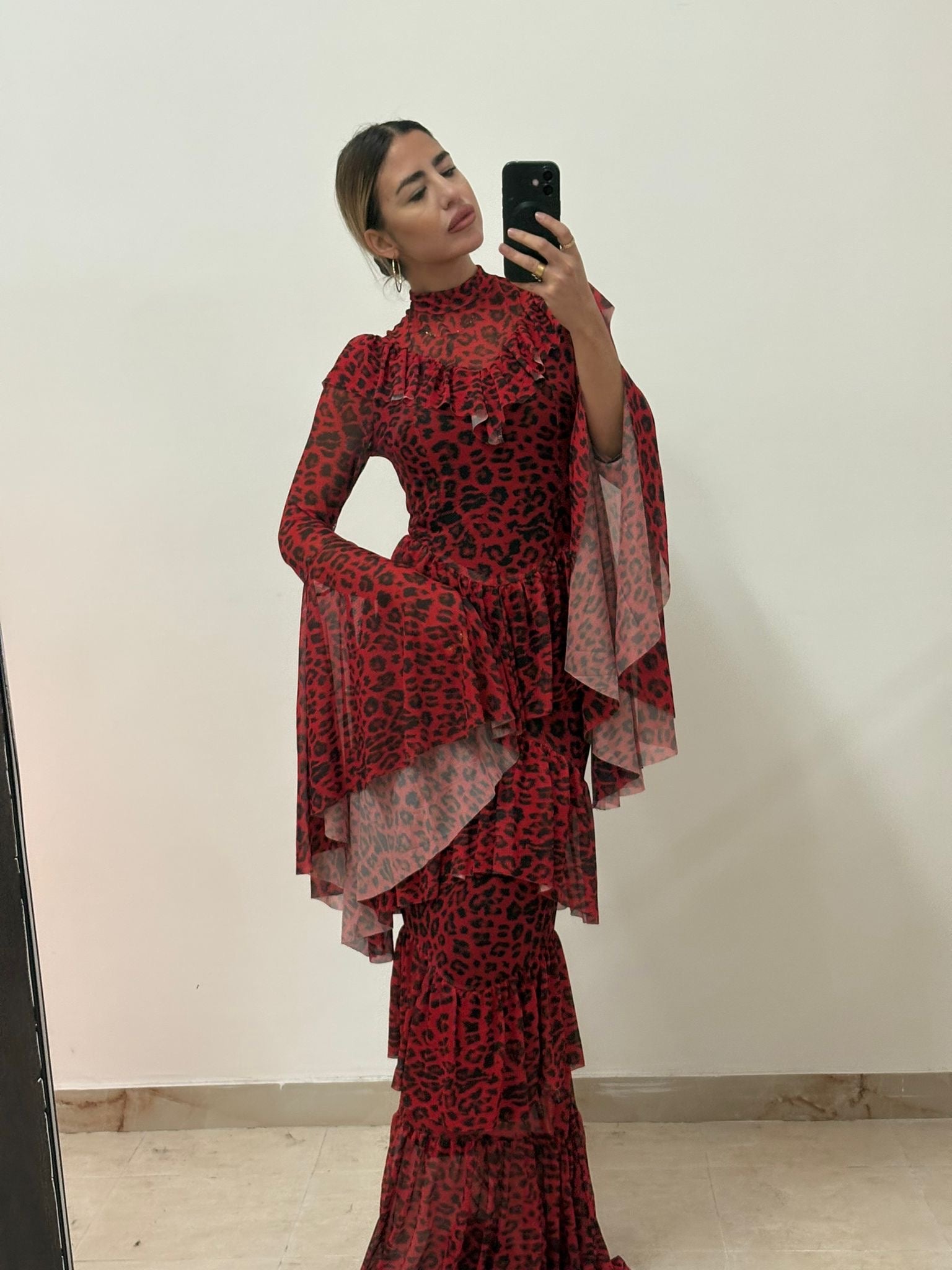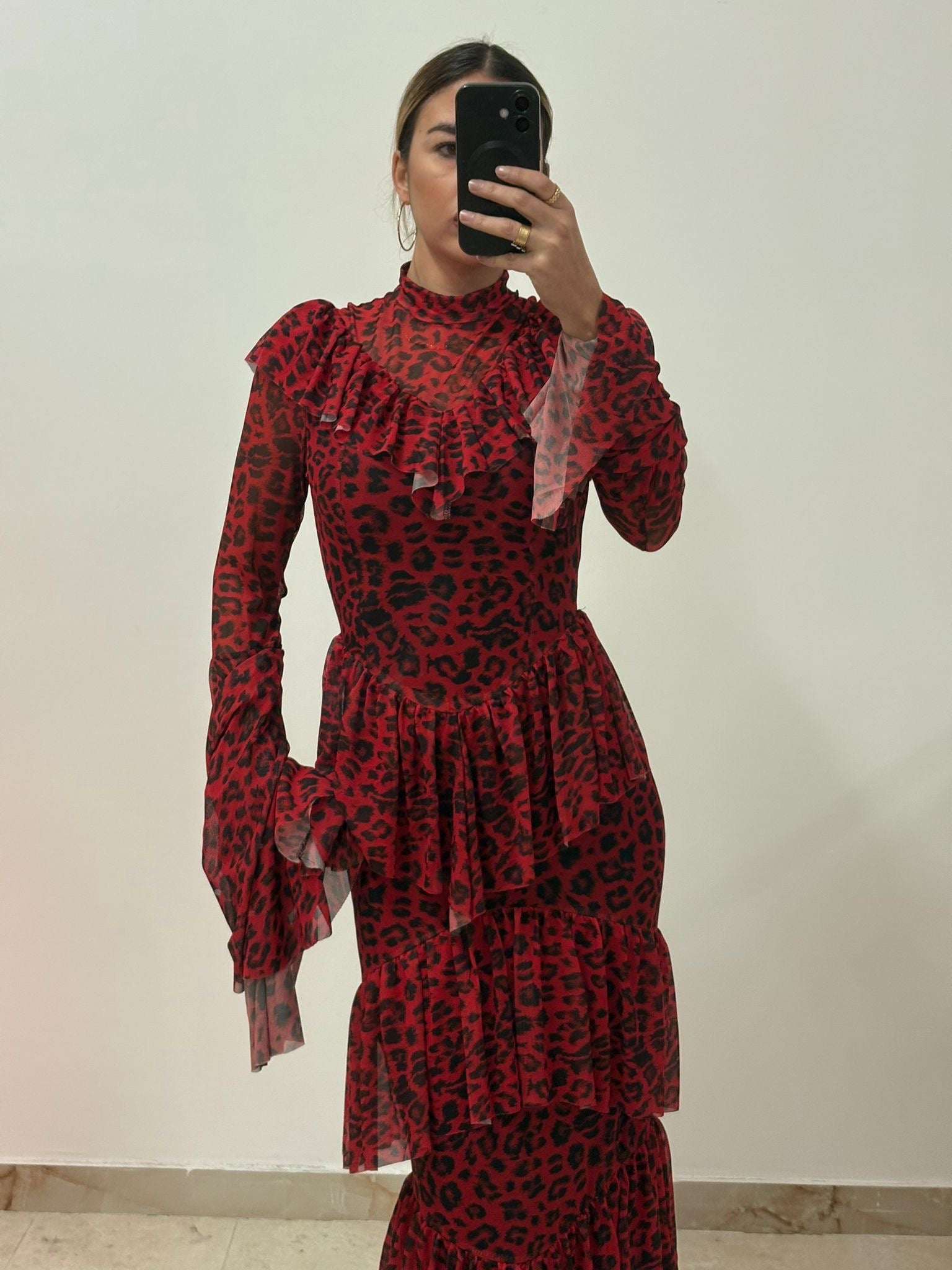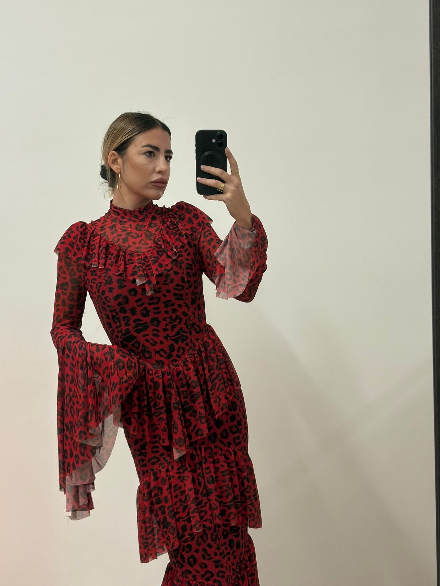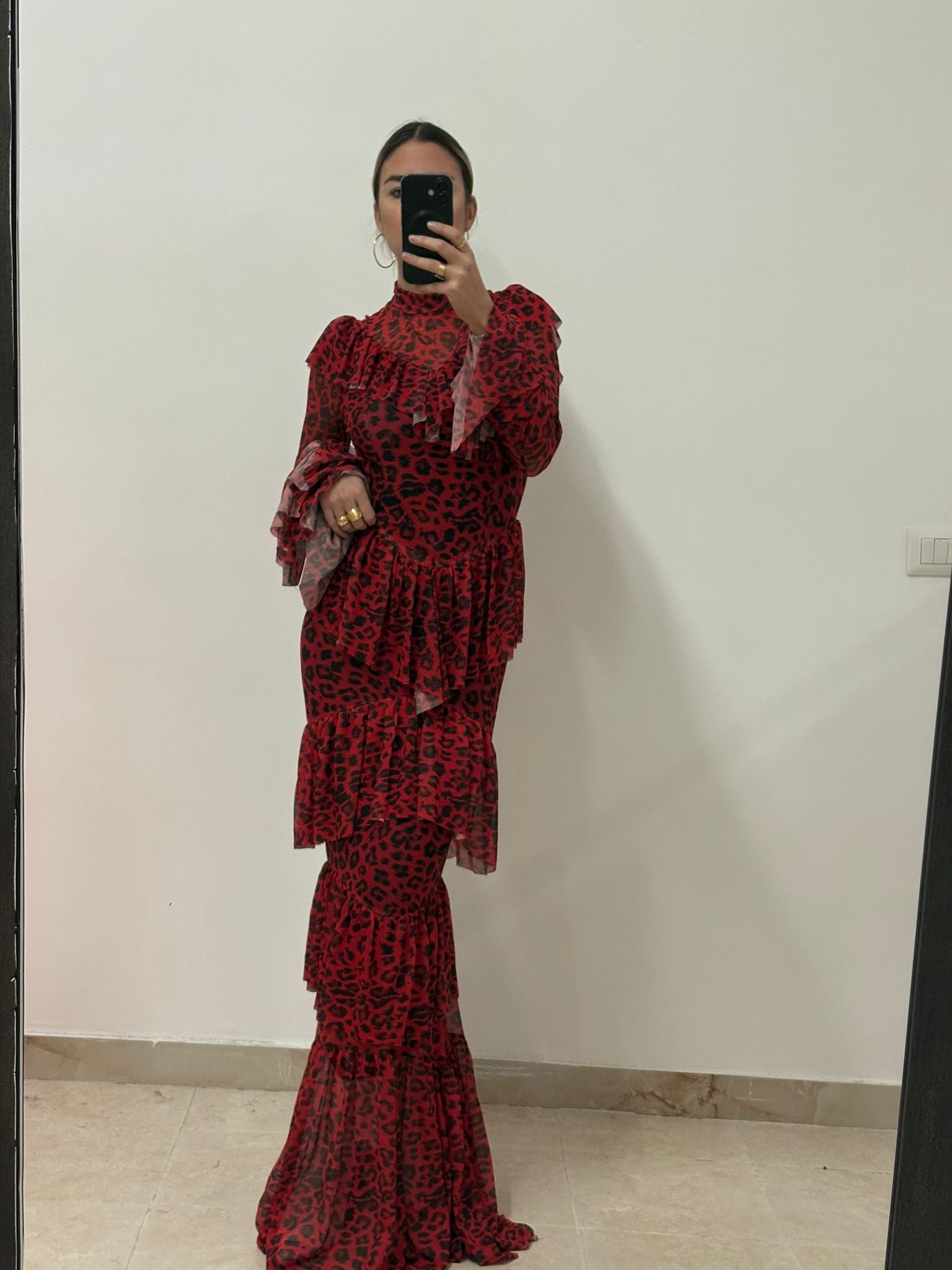 L'abito Venere è un capo romantico con balze maculato rosso, perfetto per un'occasione speciale. Il suo design elegante e femminile è ideale per creare un look raffinato e alla moda. Rendi ogni momento speciale con l'Abito Venere.