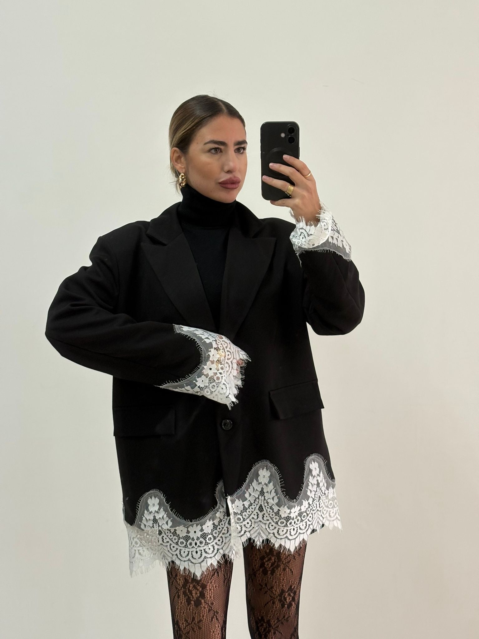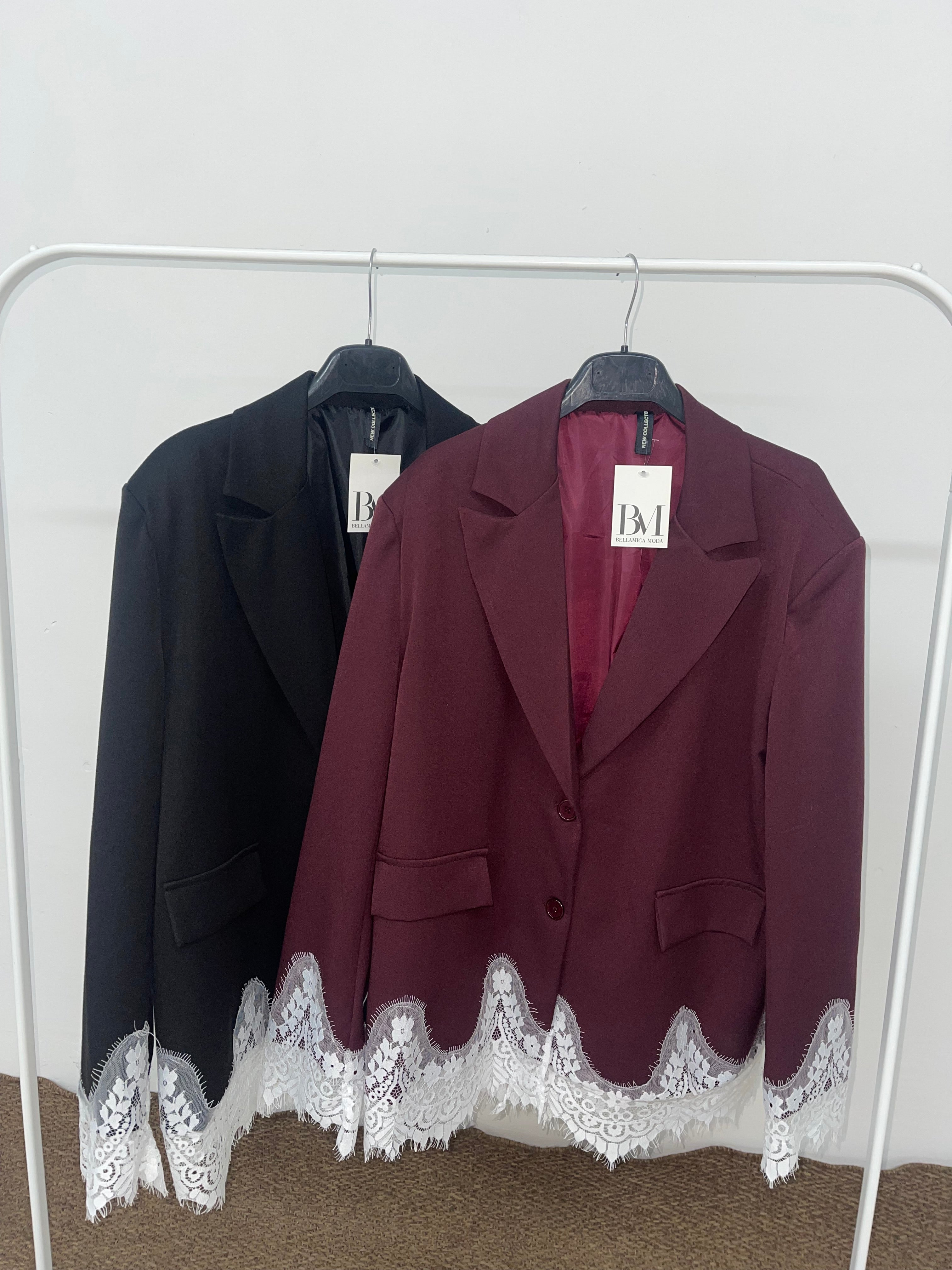 Questo blazer gioia è perfetto per chi cerca un look elegante e sofisticato. Con spalline e un tocco di merletto, questo blazer aggiungerà un tocco di femminilità al tuo outfit.