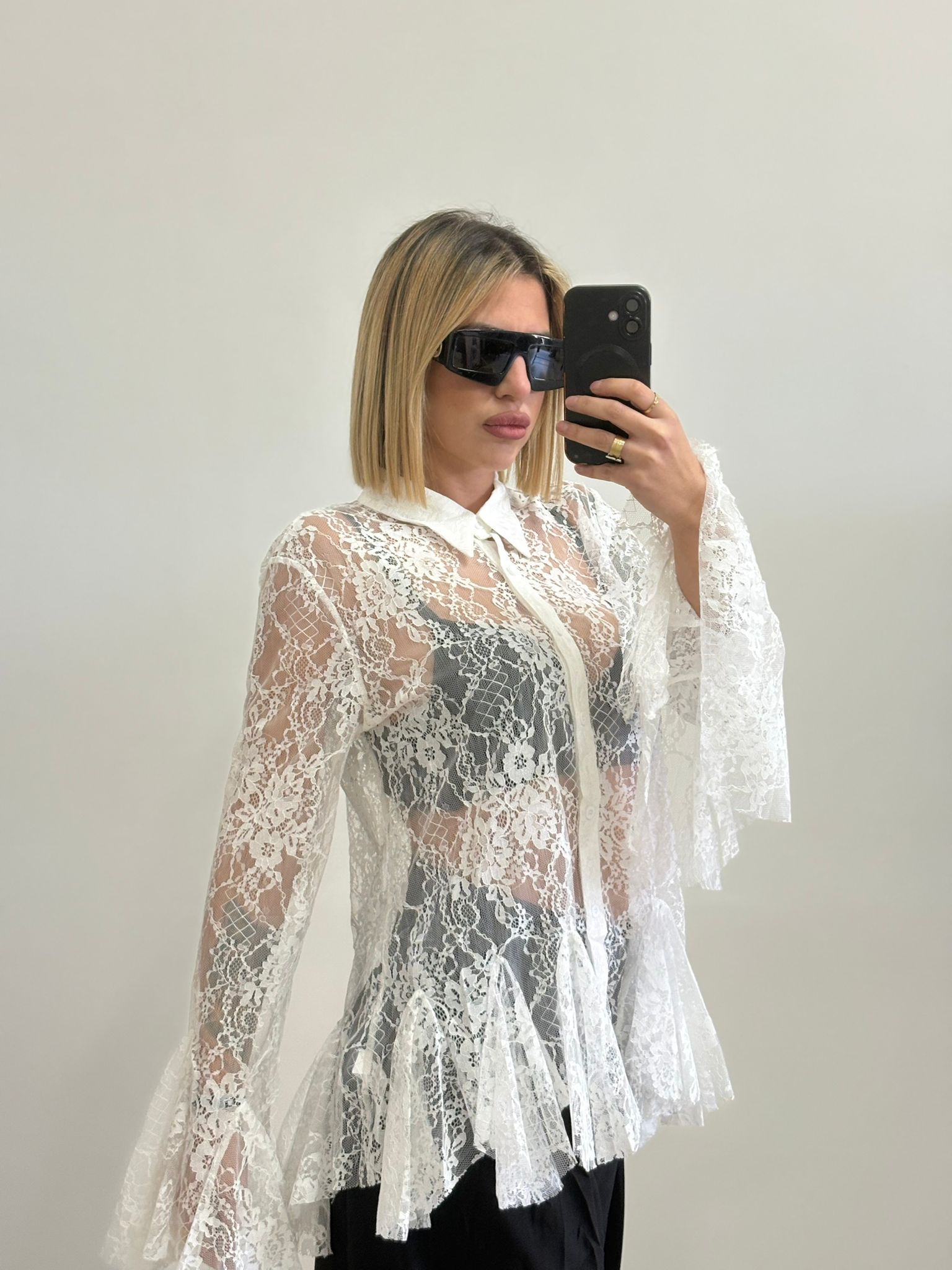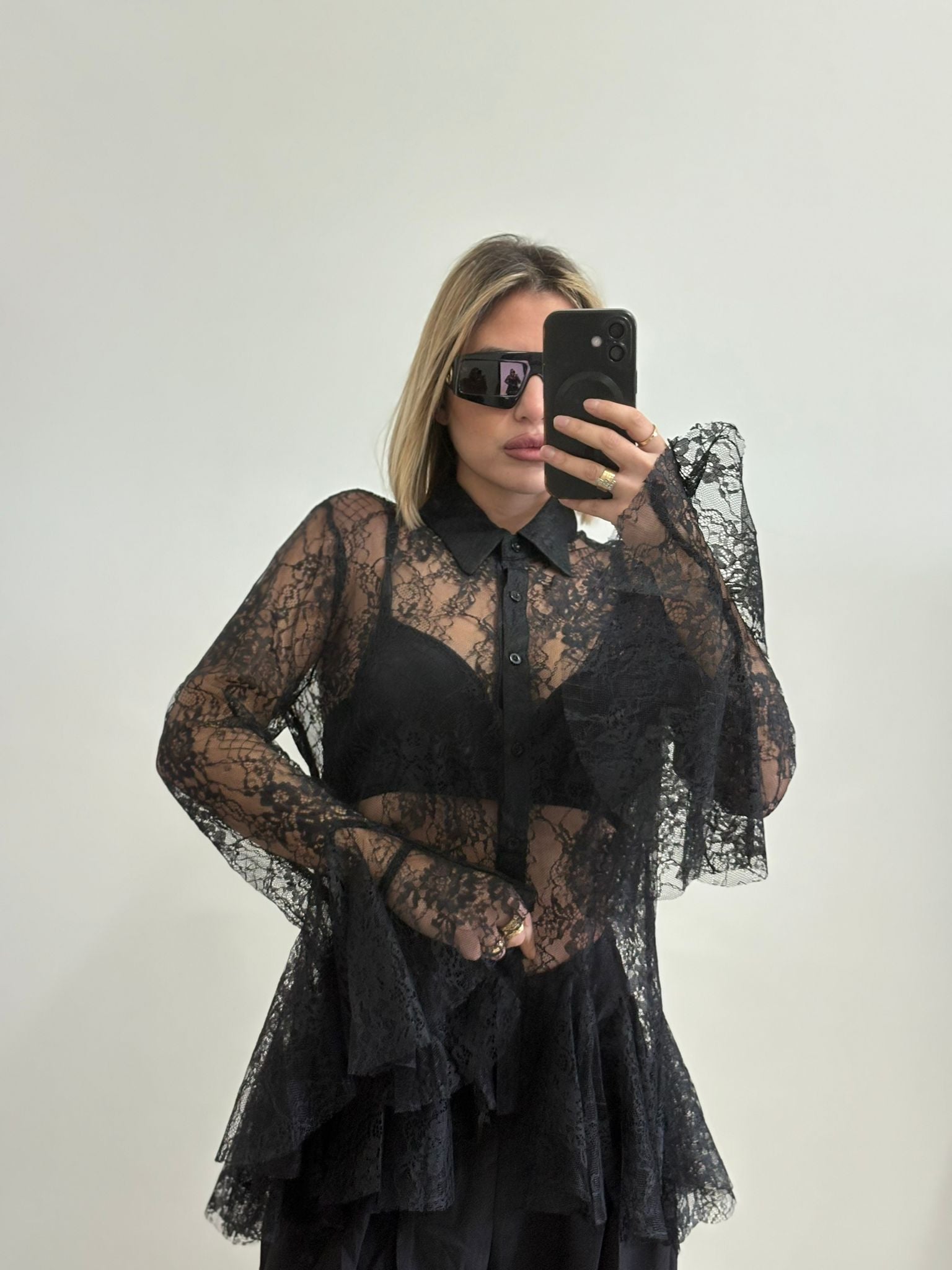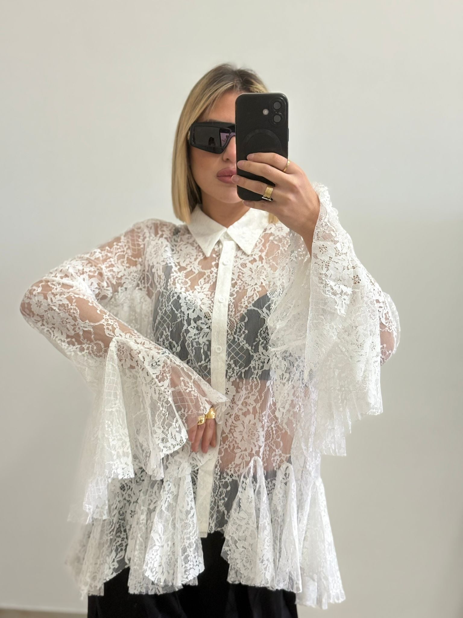 La Camicia Eleonor presenta un design merlettato che combina eleganza e raffinatezza. Realizzata con materiali di alta qualità, offre comfort e traspirabilità, ideale per occasioni formali o casuali. La texture del merletto non solo aggiunge un tocco di stile, ma migliora anche la vestibilità, adattandosi perfettamente al corpo.