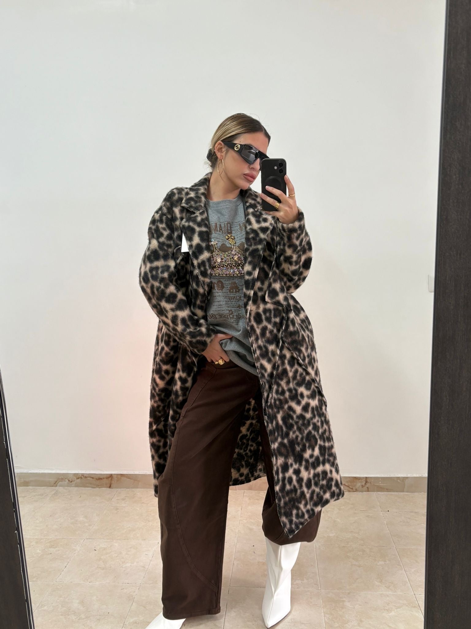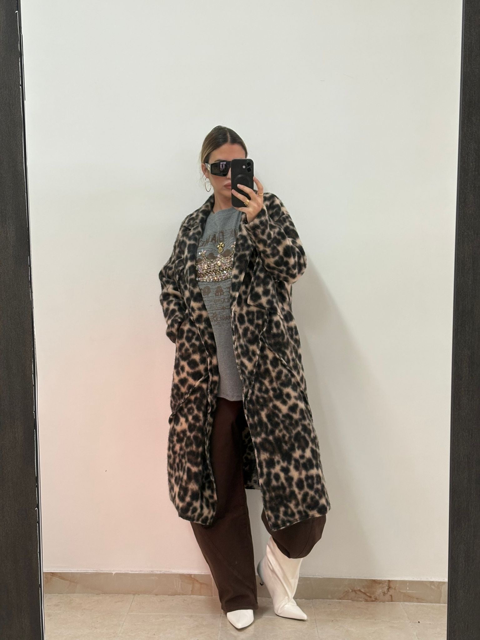 Realizzato con un mix di materiali caldi e confortevoli, il Cappotto Crudelia è perfetto per proteggerti dal freddo invernale. La stampa maculata panna e marrone aggiunge un tocco di stile al tuo look, rendendolo ideale per ogni occasione. Mantieniti al caldo e alla moda con Crudelia.