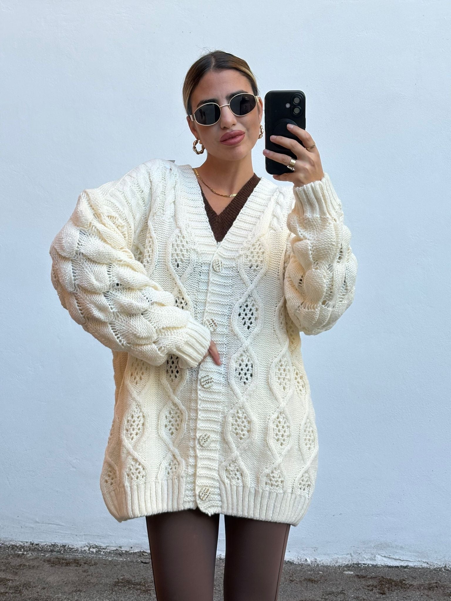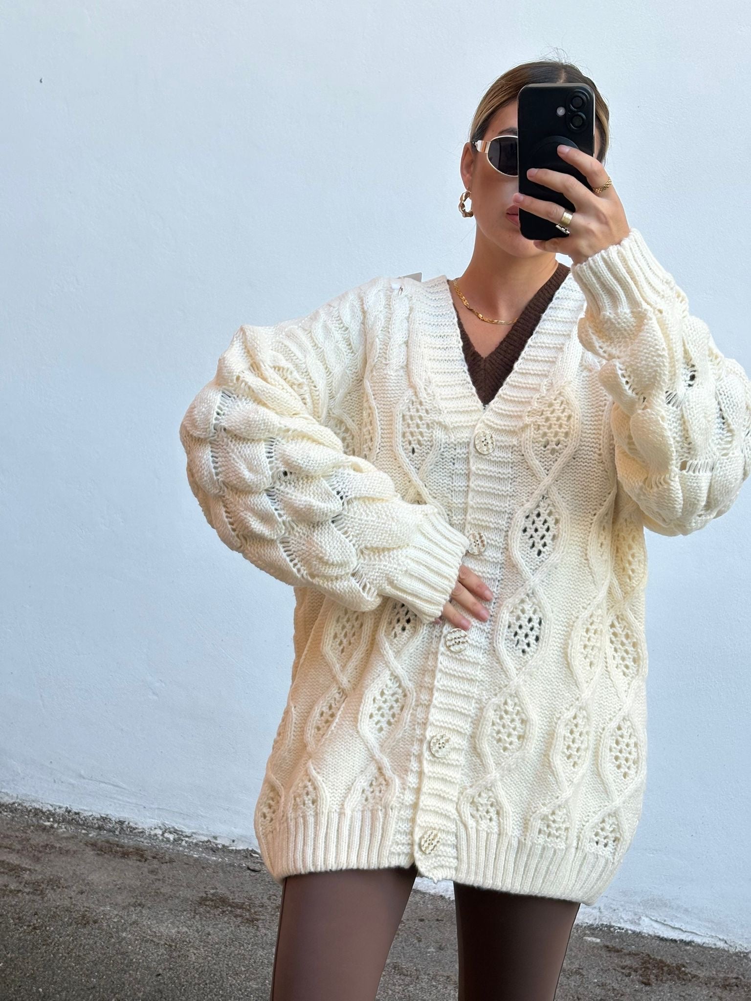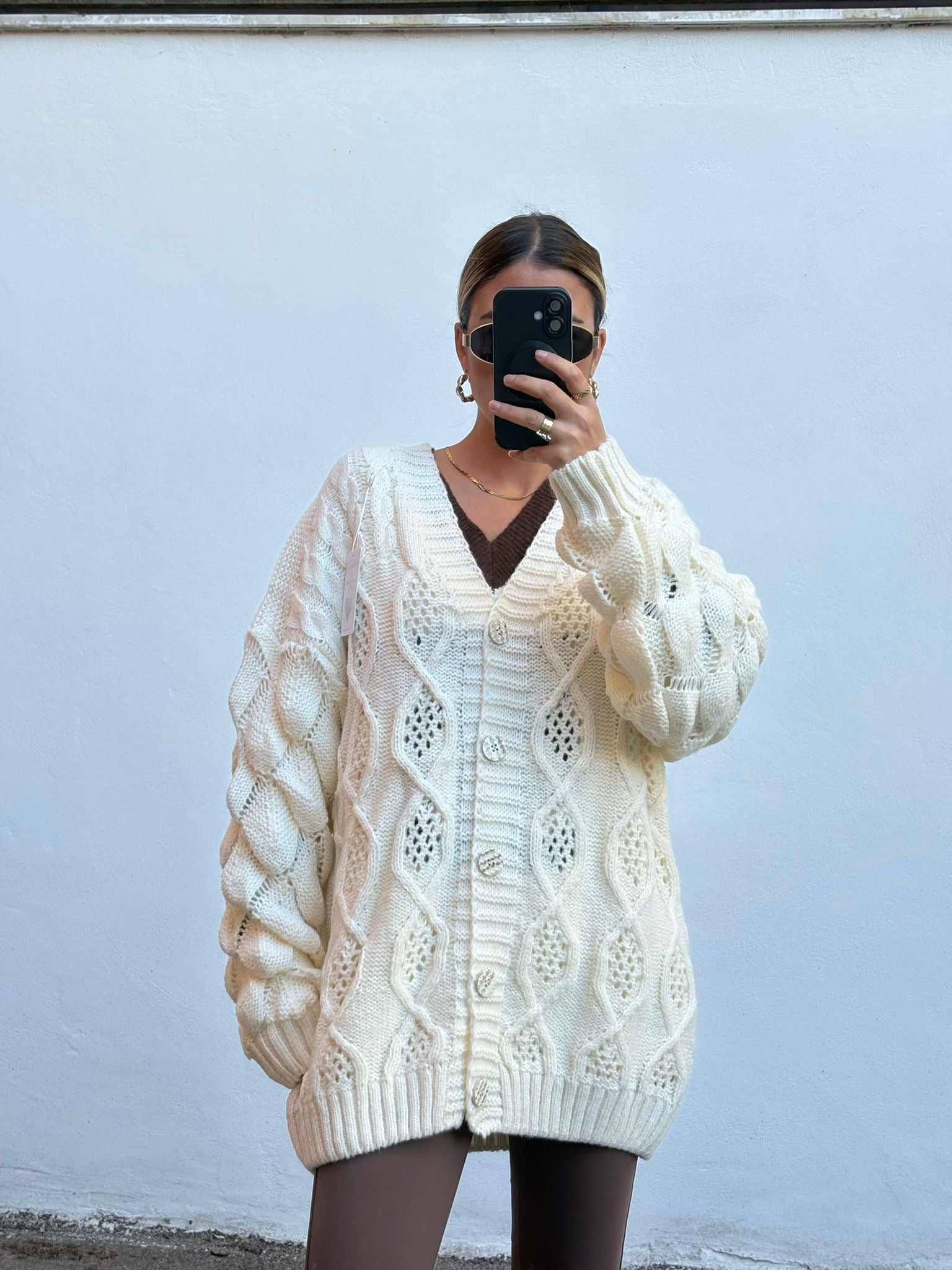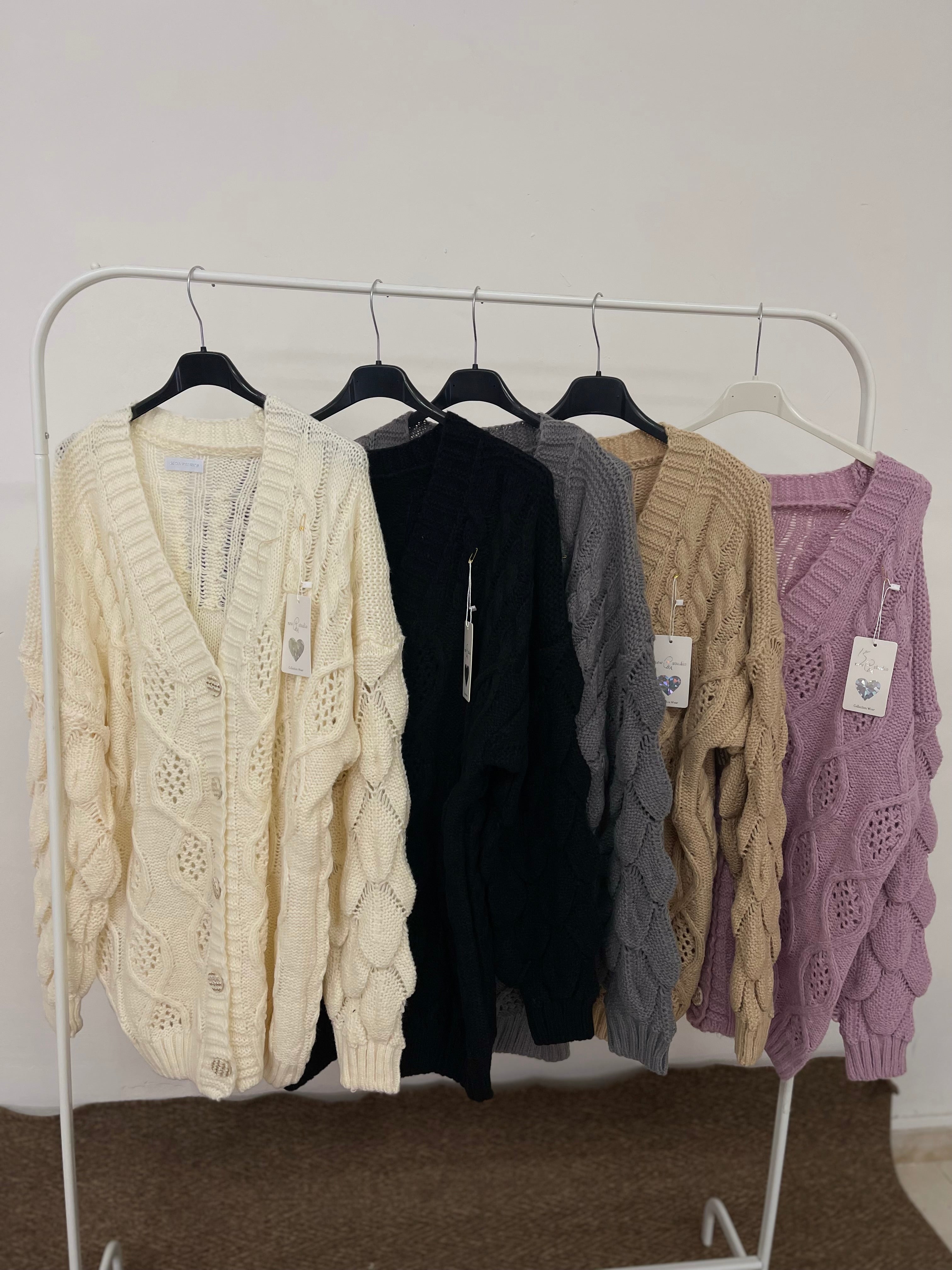 Il cardigan Greta è realizzato in caldo e morbido lana, garantendo un comfort e una resistenza ottimali. Il suo design classico e versatile lo rende perfetto per qualsiasi occasione.