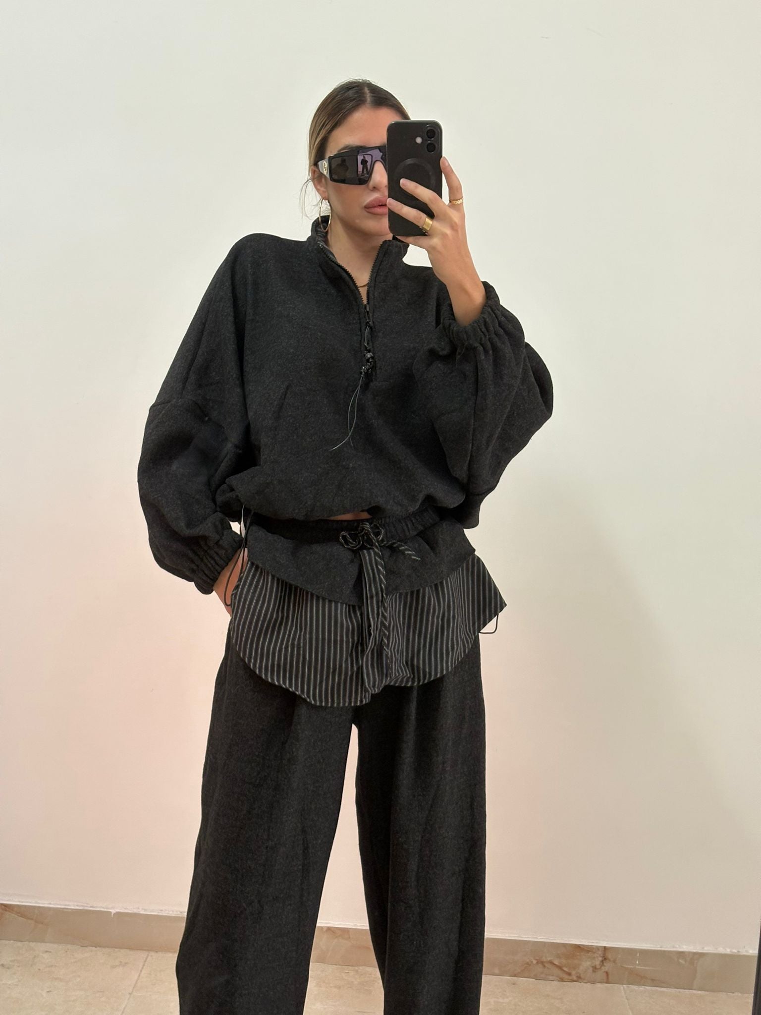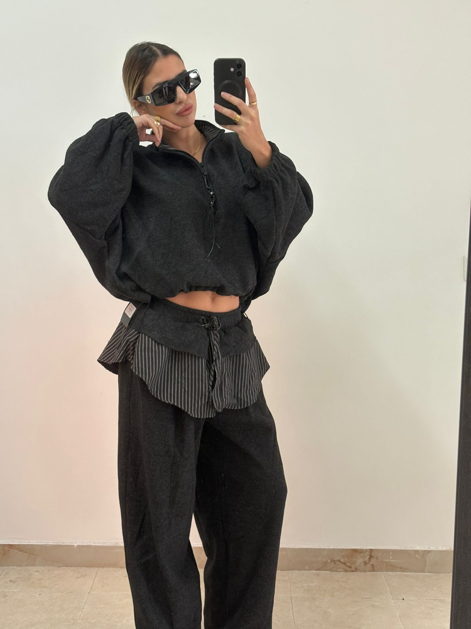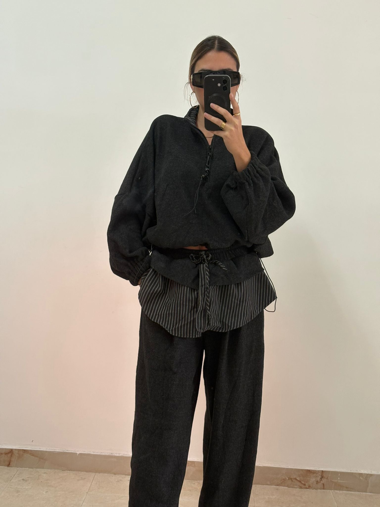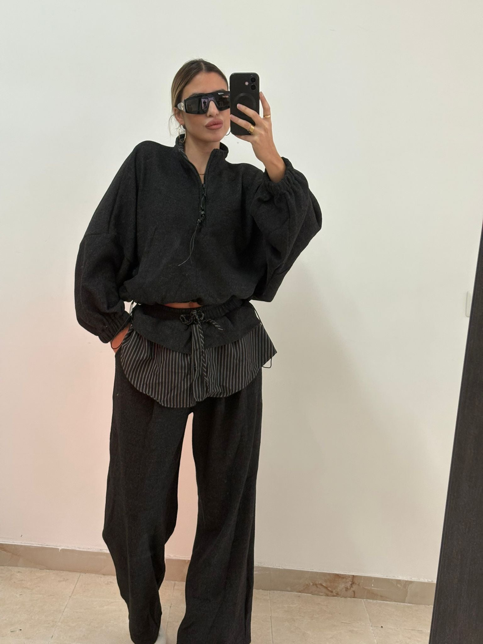Rimani allo stile elegante con il Coordinato Tuta Gessato, dotato di una morbida pelliccia interna per un comfort accogliente. Perfetto per un look sofisticato e caldo nelle fredde giornate invernali.