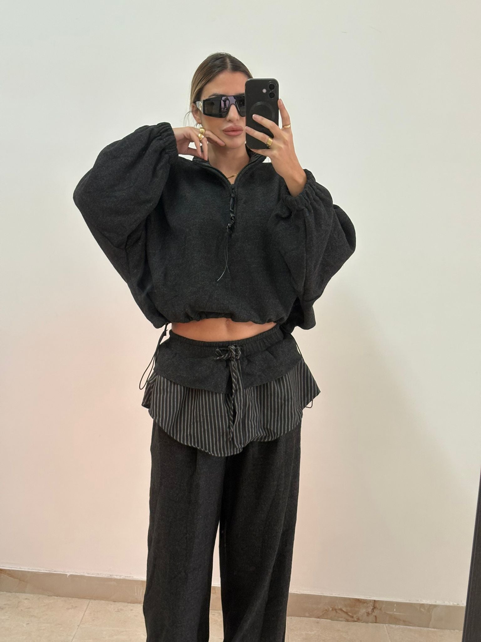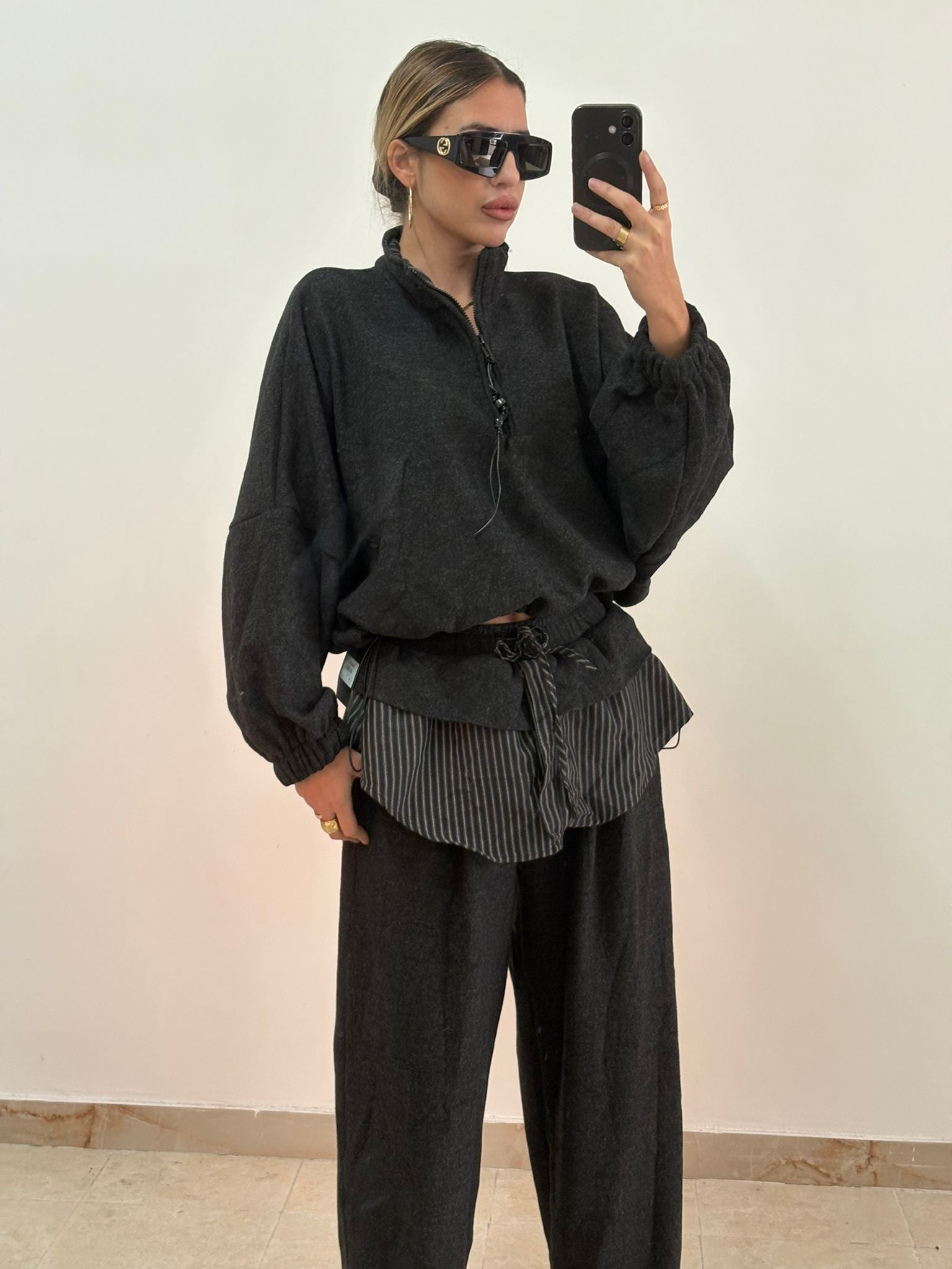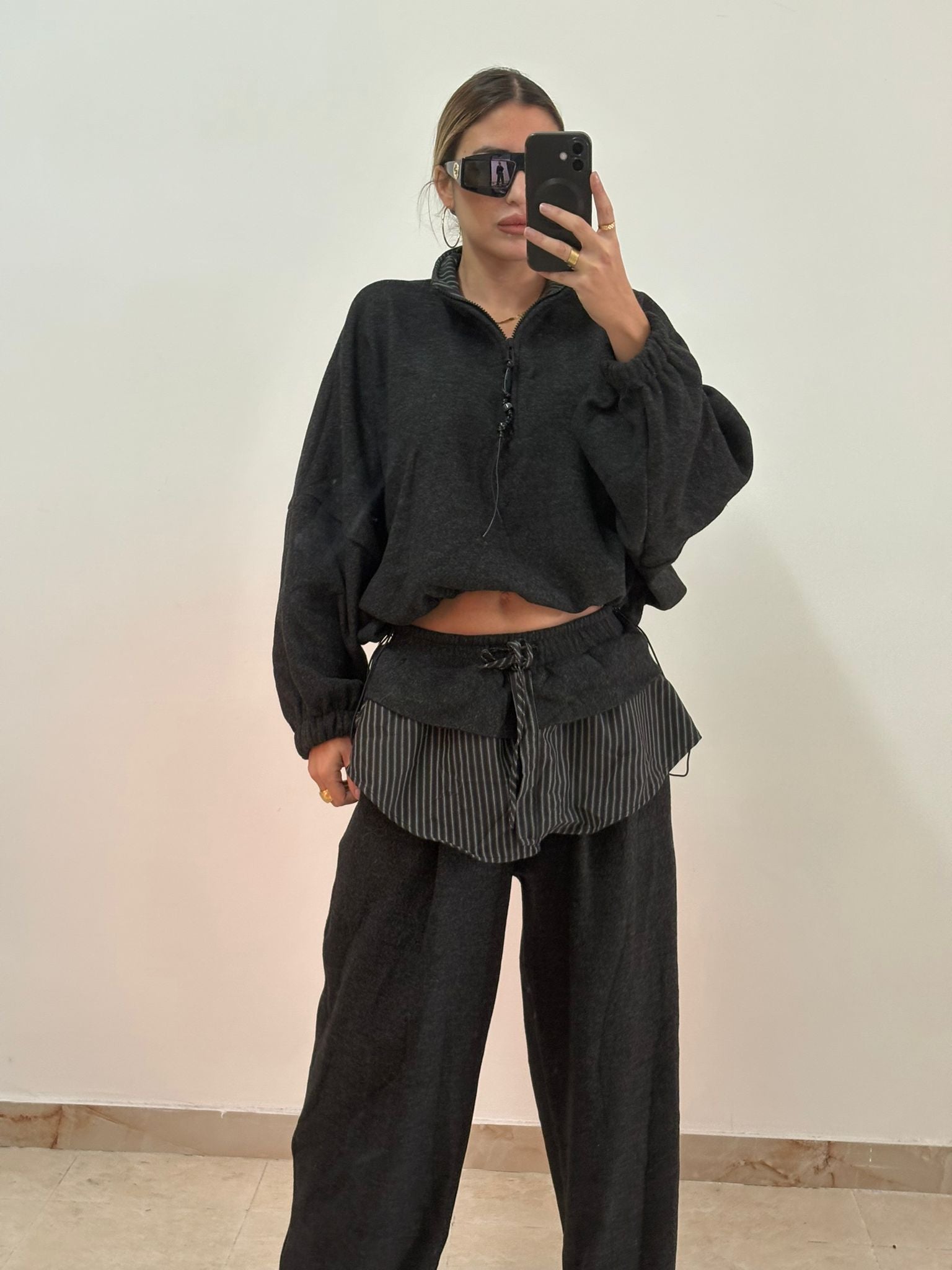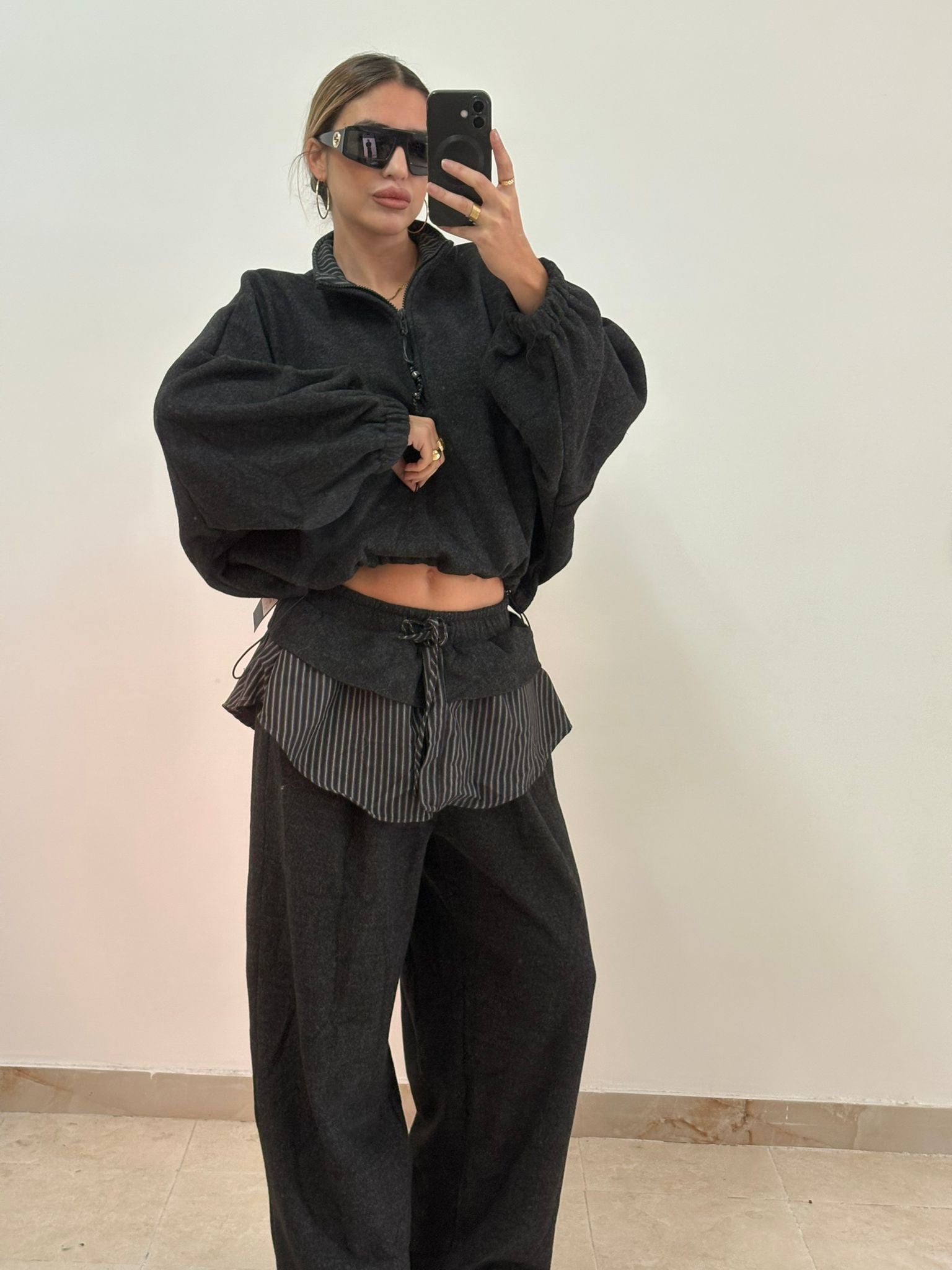 Rimani allo stile elegante con il Coordinato Tuta Gessato, dotato di una morbida pelliccia interna per un comfort accogliente. Perfetto per un look sofisticato e caldo nelle fredde giornate invernali.