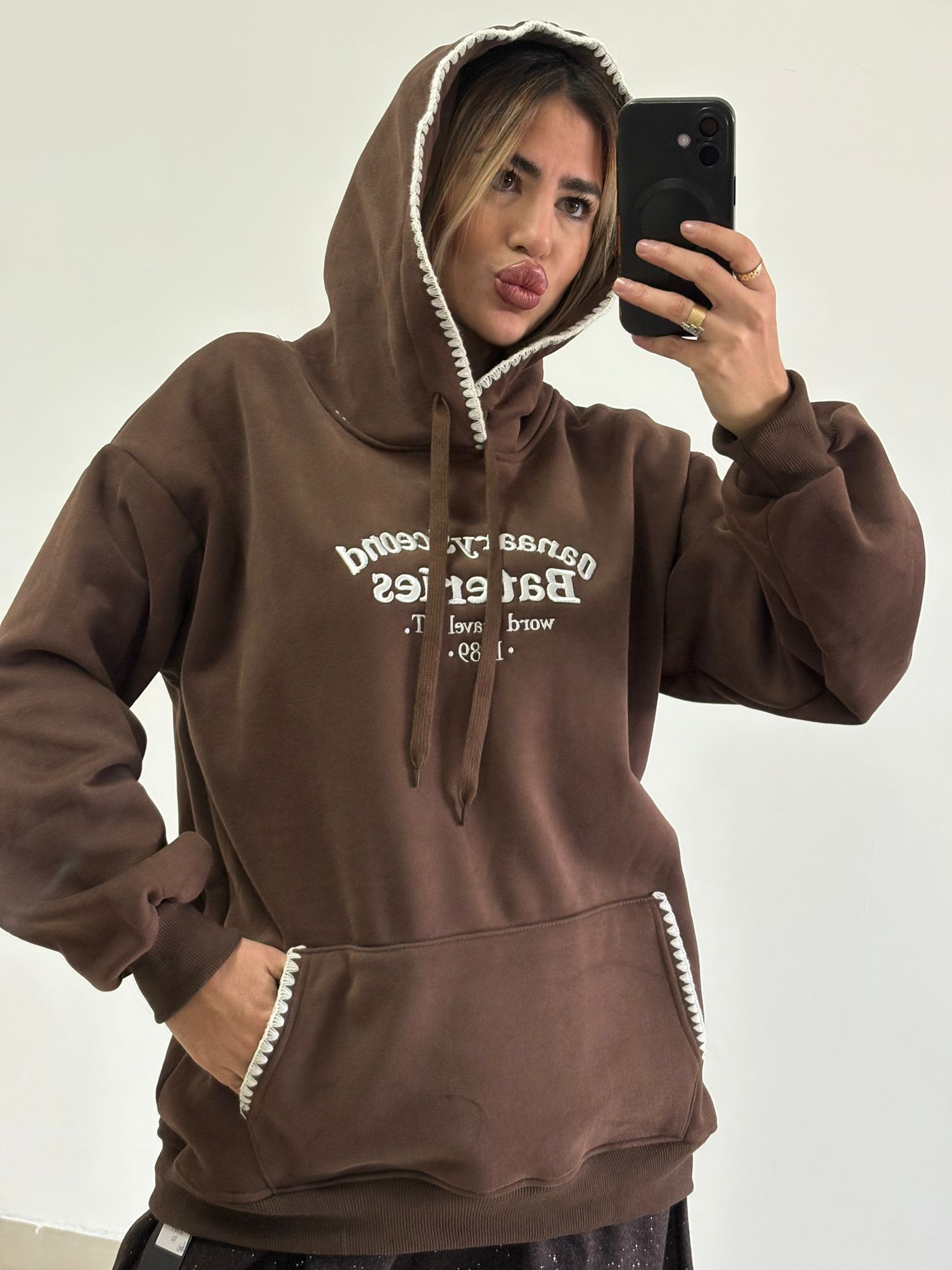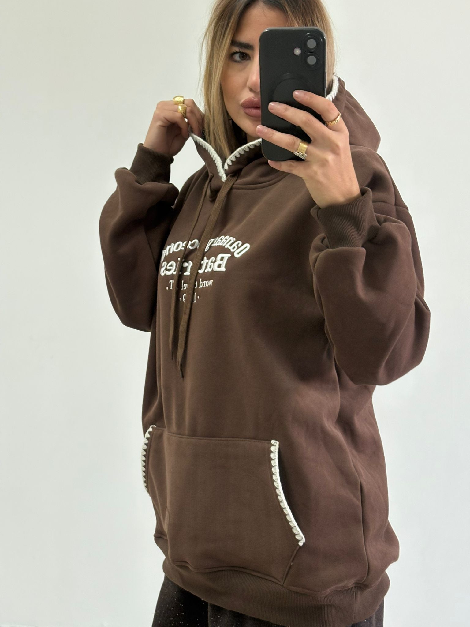 Questa Felpa Brown è perfetta per le giornate fredde. Grazie al suo tessuto caldo e al cappuccio, ti manterrà al caldo e confortevole. Ideale per attività all'aperto o semplicemente per rilassarsi a casa, la Felpa Brown sarà il tuo nuovo capo preferito.