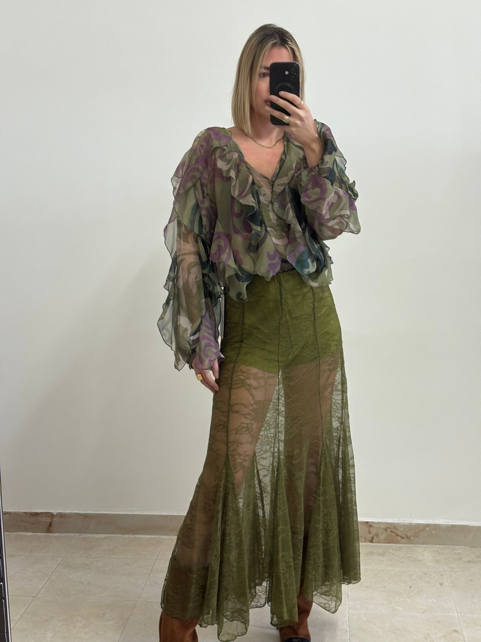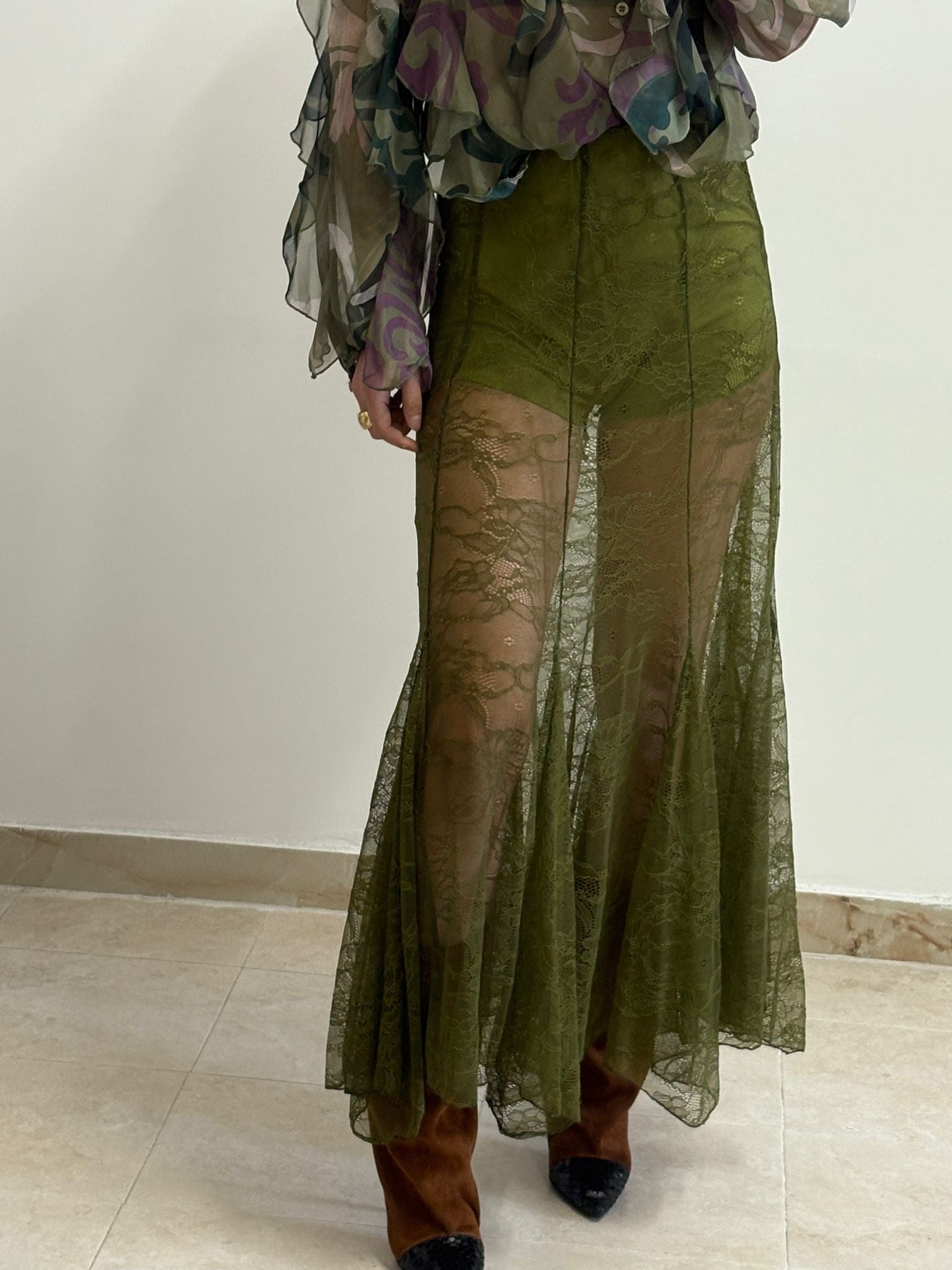 La Gonna Esmeralda, caratterizzata da un design merlettato, offre un'elegante combinazione di stile e raffinatezza. La struttura in tessuto di alta qualità garantisce comfort e durata, mentre il merletto aggiunge una nota di sofisticatezza. Ideale per contesti formali o serate speciali, questa gonna valorizza ogni figura.
