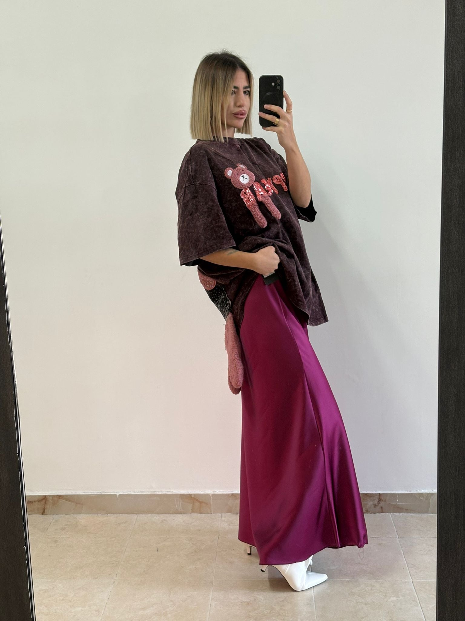 La gonna raso è un ottimo aggiunta al tuo guardaroba! Realizzata in morbido raso, questa gonna lunga è un mix perfetto di comfort e stile. La sua lunghezza ti permette di indossarla in diverse occasioni, mentre il morbido tessuto garantisce un comfort duraturo. Aggiungi un tocco di eleganza al tuo look con questa gonna di raso versatile.