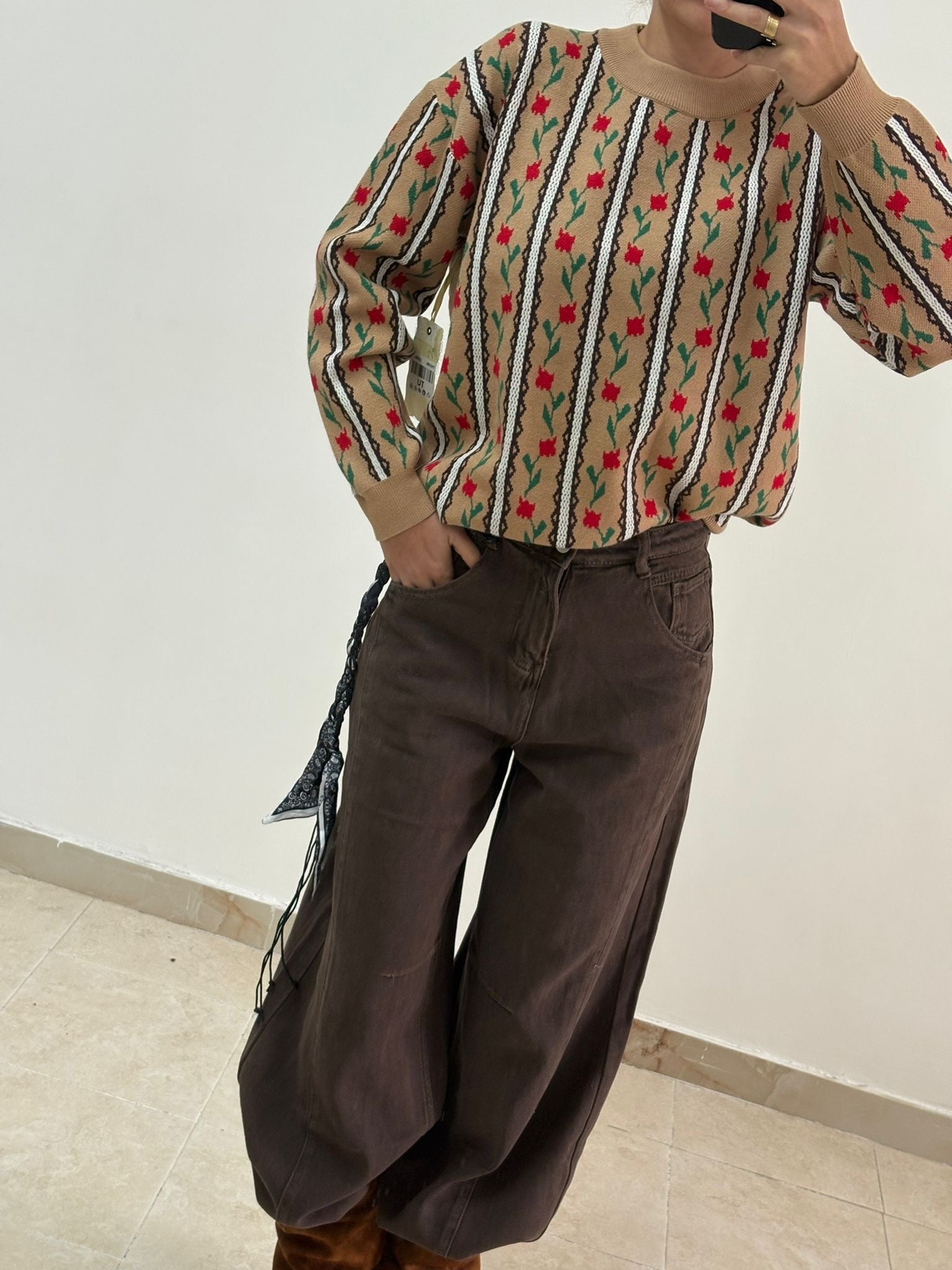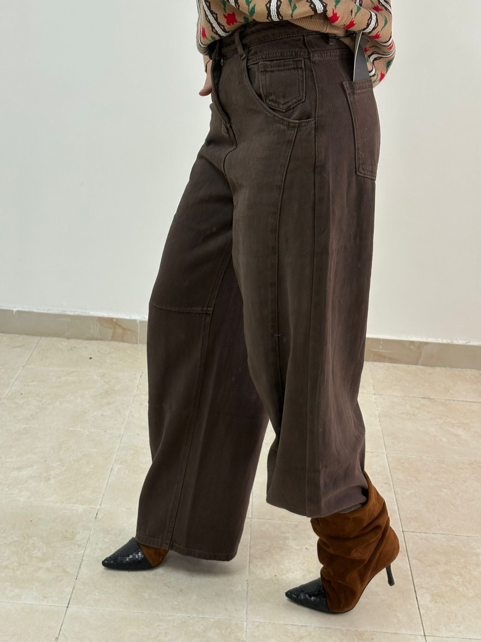 Jeans choco dal design sottile e versatile, con cinturino per una vestibilità perfetta e un modello palazzo per un look moderno. Fatti notare per la tua eleganza e comodità con questi jeans di alta qualità.