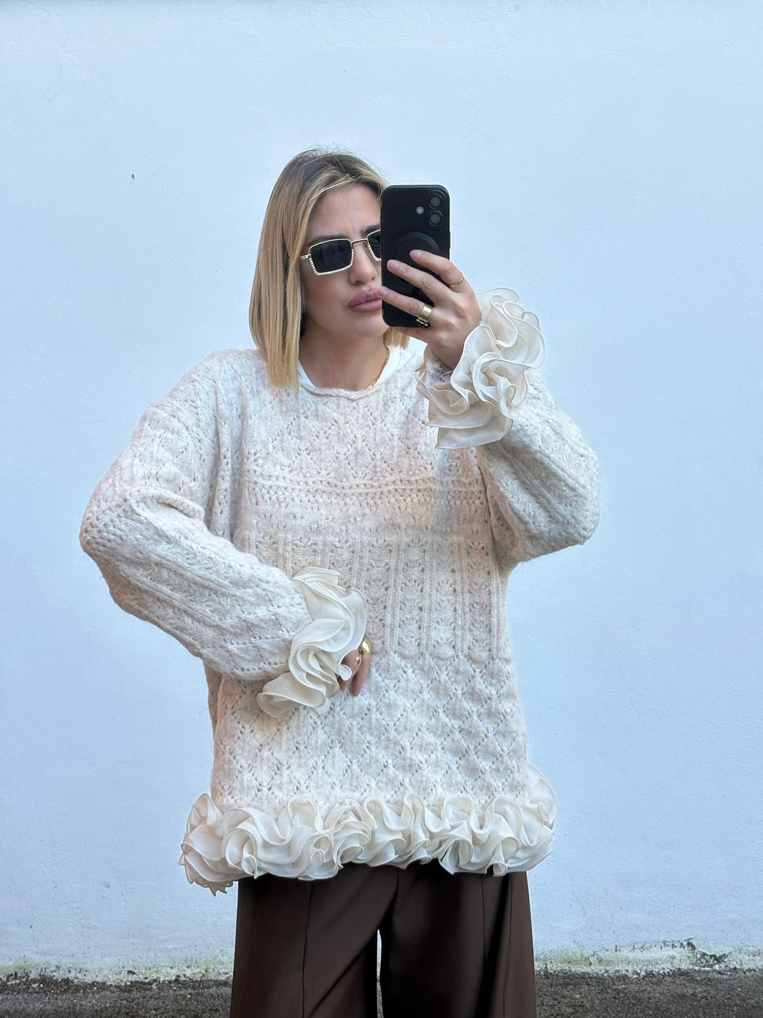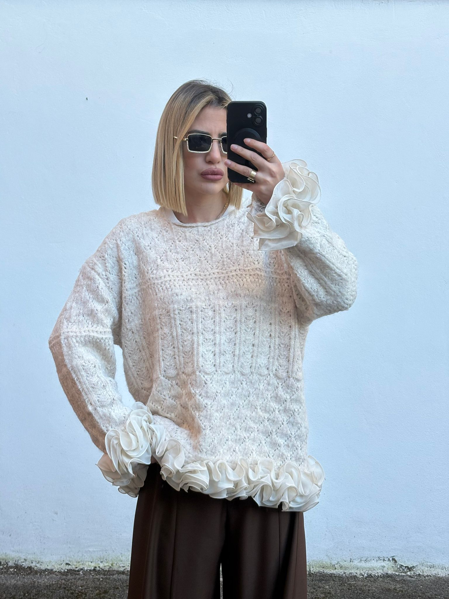 Il maglione Ludmilla presenta dettagli distintivi sulle maniche, contribuendo a un'estetica raffinata. Realizzato con materiali di alta qualità, offre comfort e durata. Questo capo è ideale per la sovrapposizione in diverse condizioni climatiche, garantendo versatilità e praticità nell'abbigliamento quotidiano.