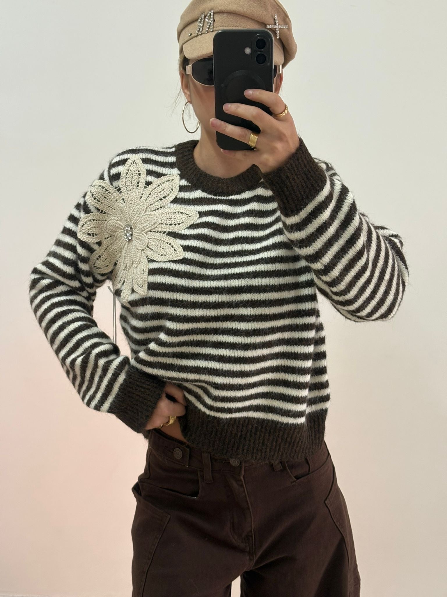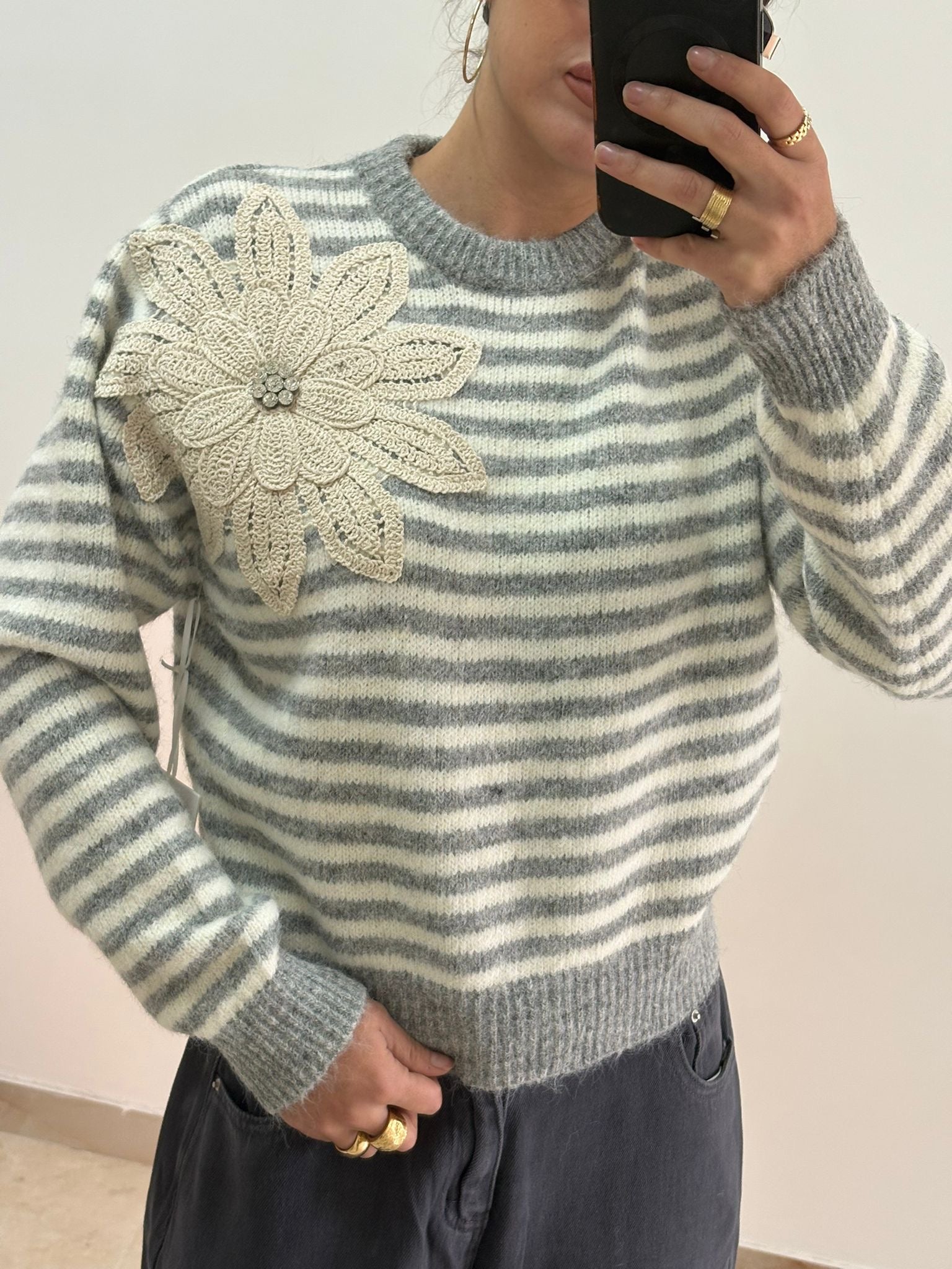 Questo maglione in lama, dal design unico e moderno, presenta un raffinato inserto floreale. Realizzato con materiali di alta qualità, garantisce una vestibilità comoda e una sensazione di morbidezza sulla pelle. Con Maglione Marghe, unisce stile e comfort in un unico capo.
