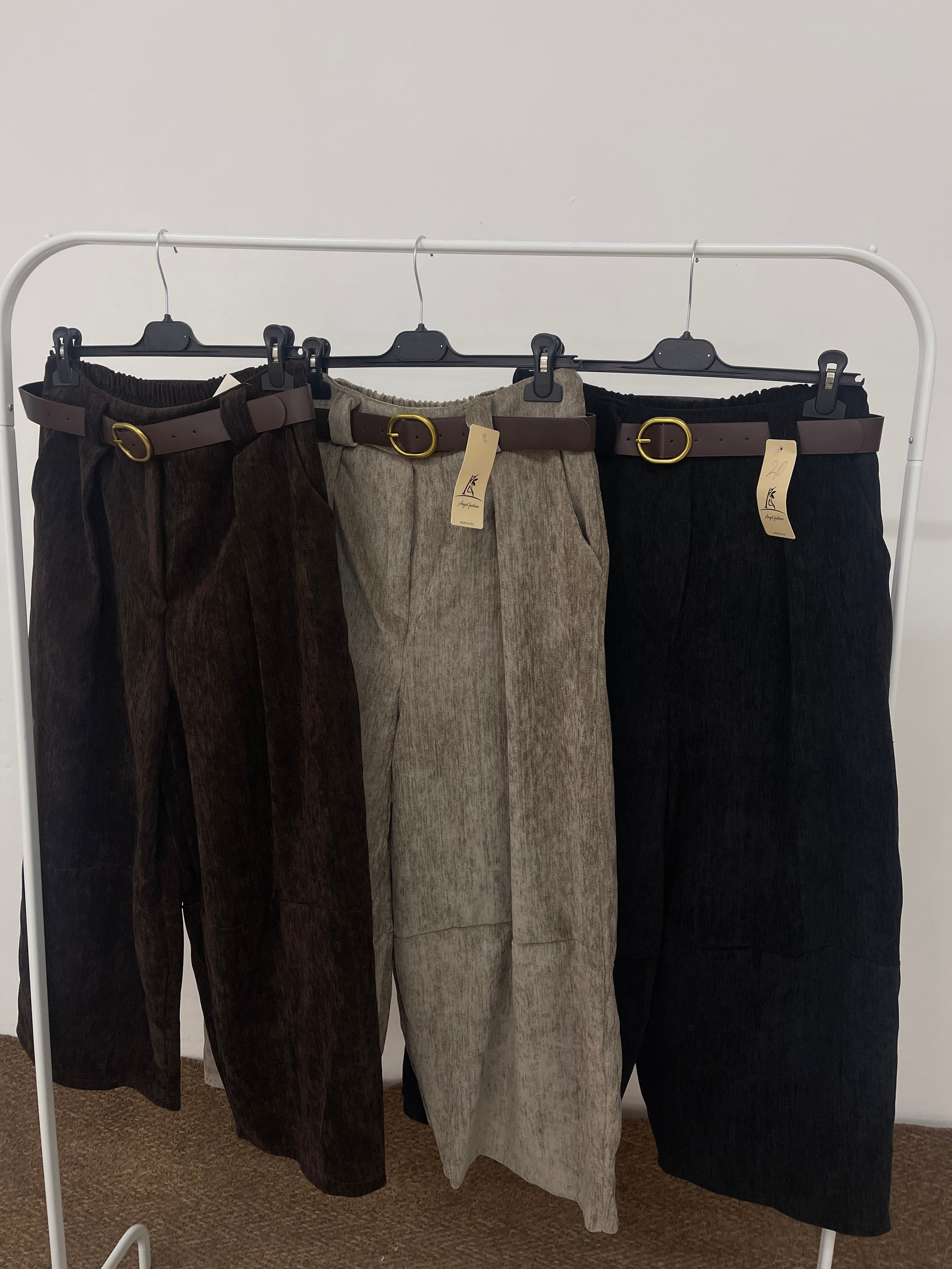 Questi Pantaloni Serena sono realizzati in morbido velluto e sono dotati di una comoda cintura che aggiunge un tocco di raffinatezza. Perfetti per un look elegante e confortevole da indossare tutto il giorno.