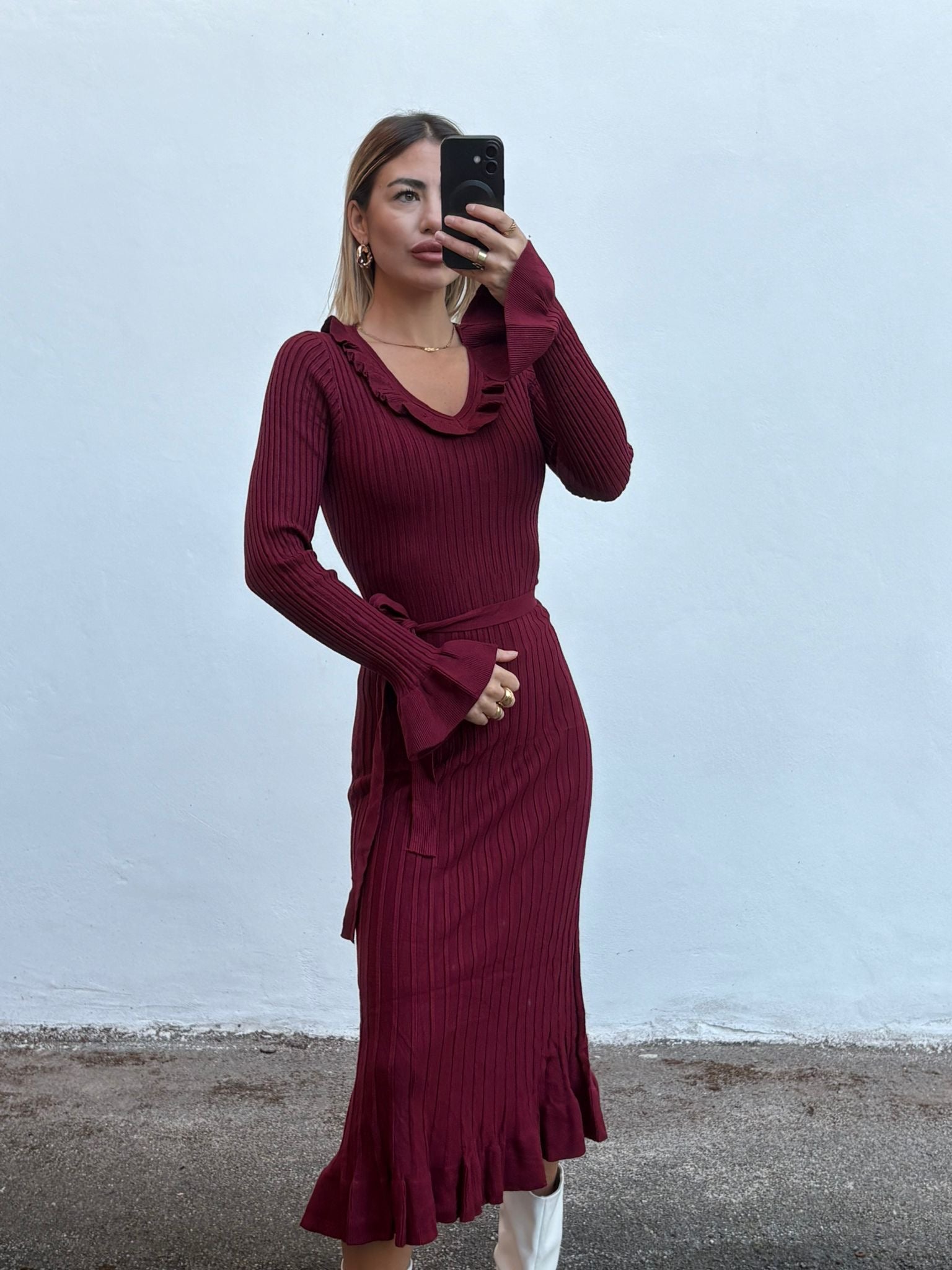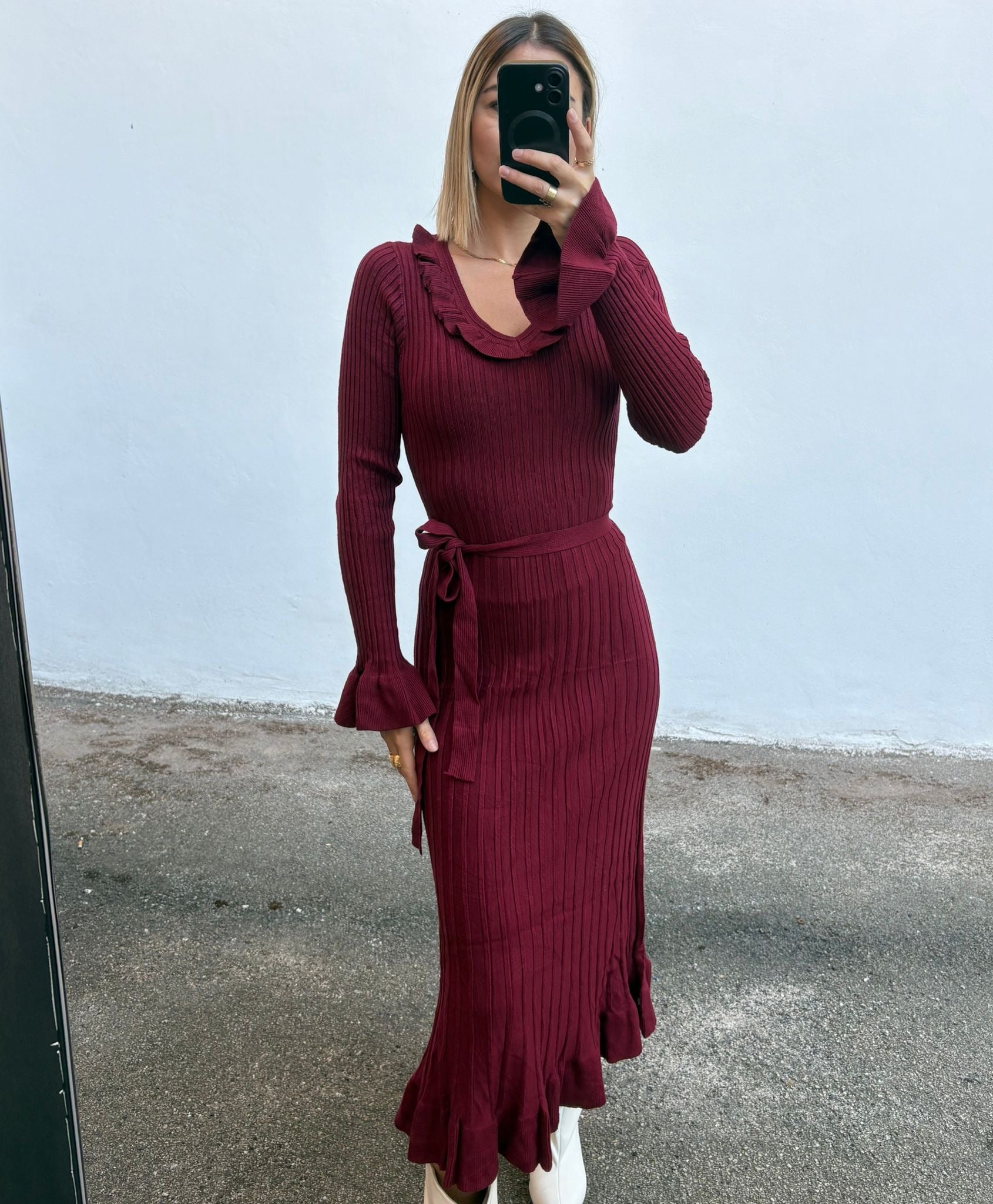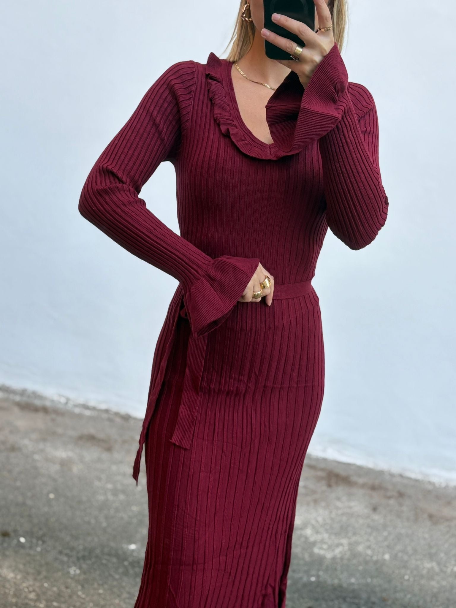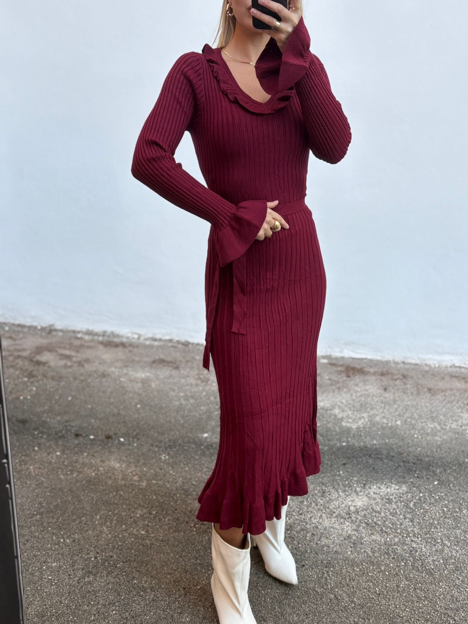 Il vestito Romi è composto da morbide costine e graziose rouches. La sua elegante silhouette si adatta perfettamente a qualsiasi figura, mentre le costine offrono una vestibilità confortevole. Le rouches aggiungono un tocco di romanticismo. Perfetto per un look raffinato e femminile.
