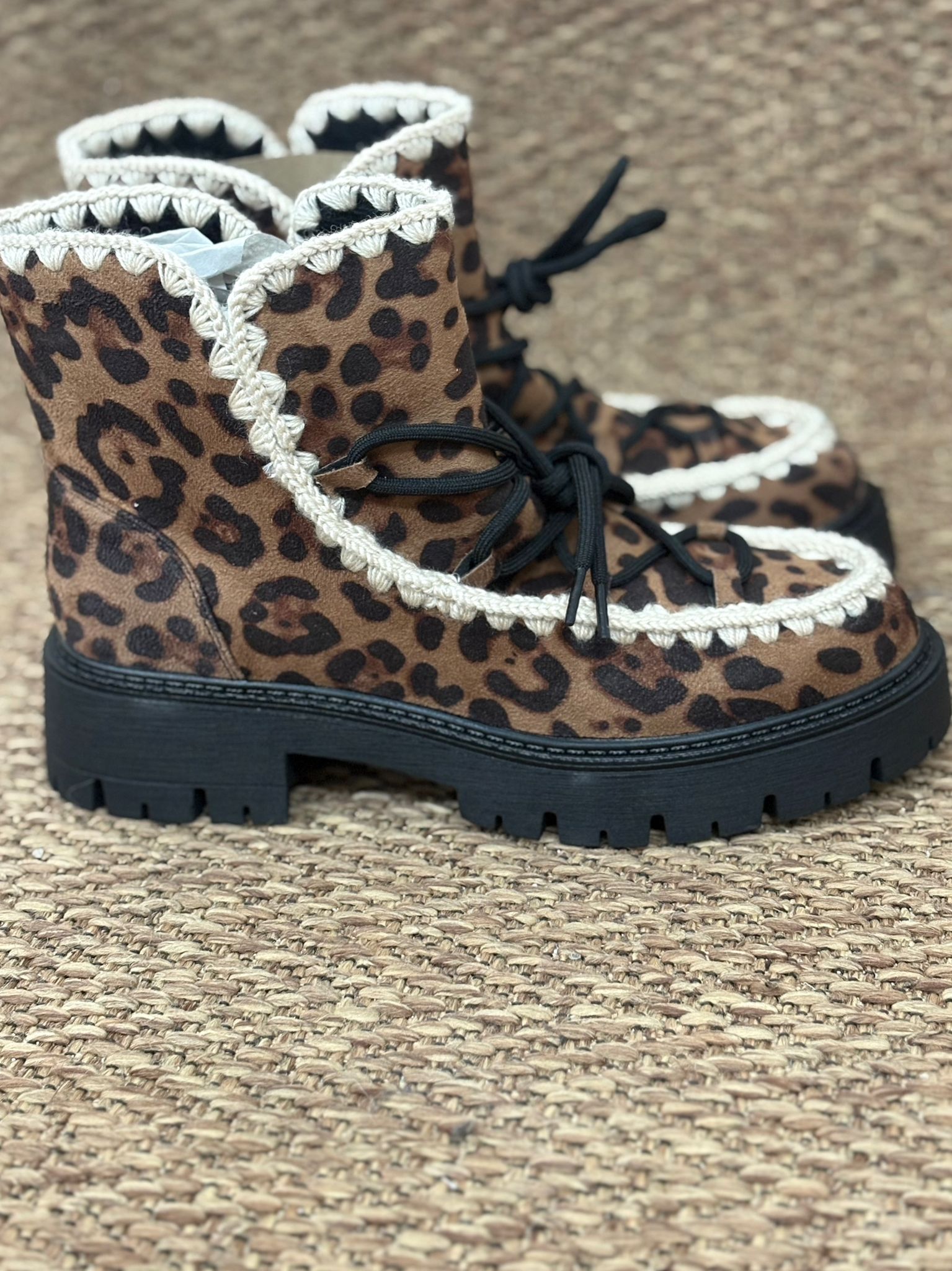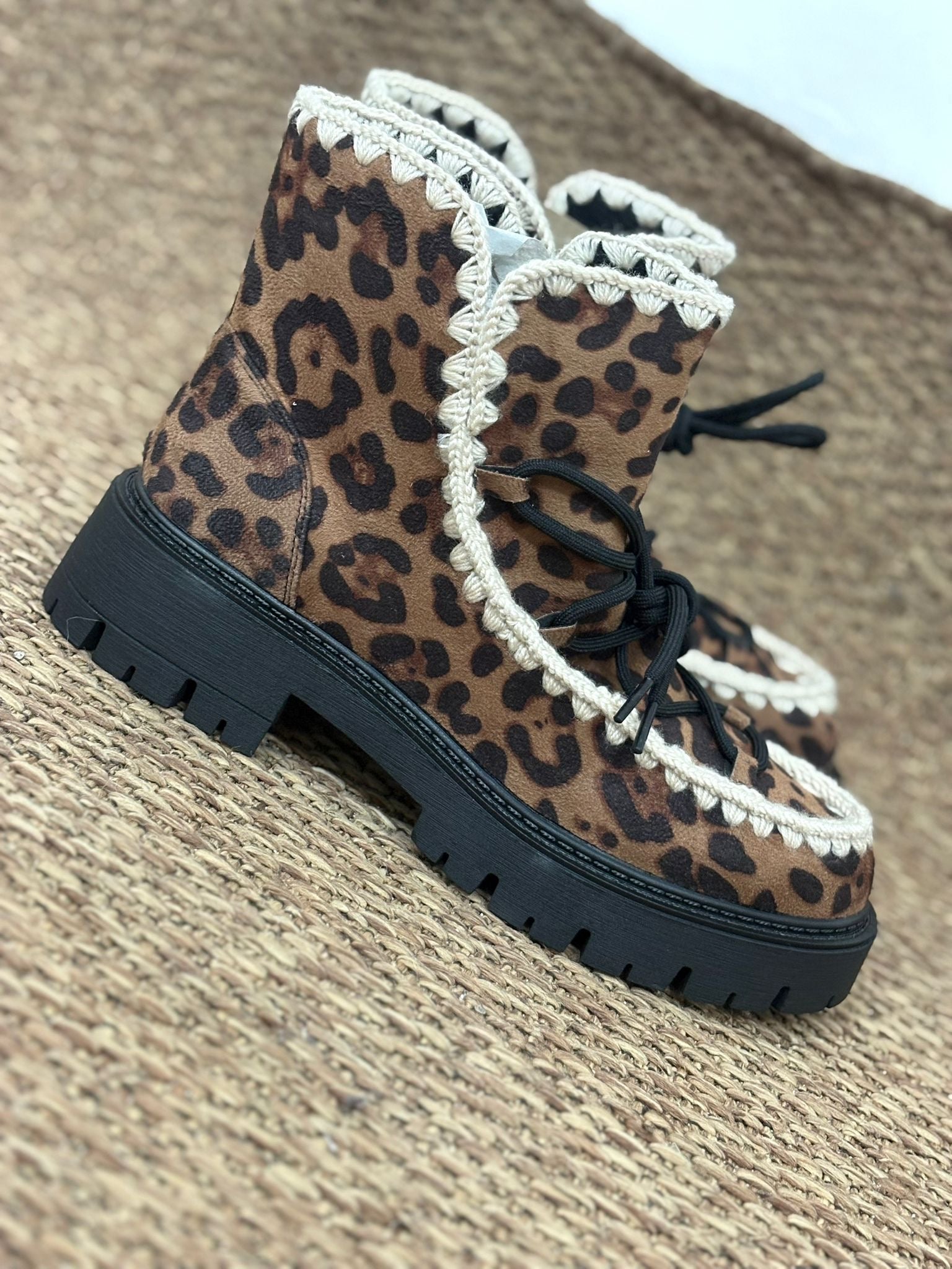 Questo stivaletto invernale maculato è perfetto per affrontare le fredde giornate invernali. Realizzato con materiali di alta qualità, offre un design moderno e alla moda. Il suo sottopiede imbottito e la suola antiscivolo garantiscono calore e sicurezza nei movimenti.