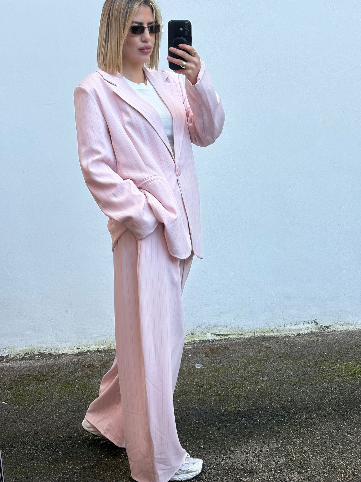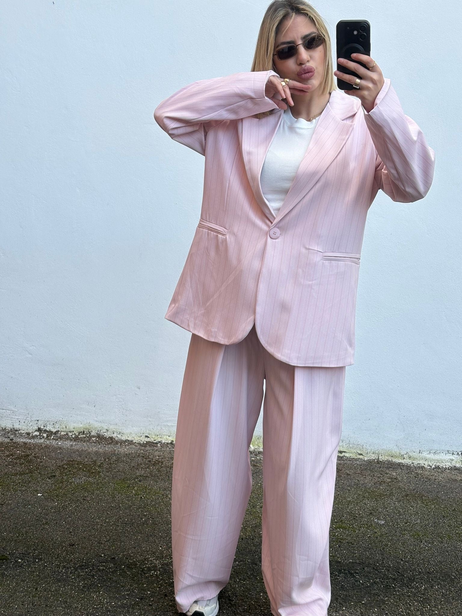 Il Tailleur Alina, in taglia unica fino a una L con un elegante design gessato, offre una vestibilità versatile adatta a diverse corporature. Realizzato con materiali di alta qualità, garantisce comfort e durata. Questo tailleur è ideale per contesti professionali, grazie alla sua estetica raffinata e al supporto che fornisce durante tutta la giornata lavorativa.